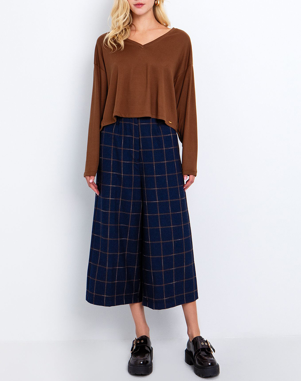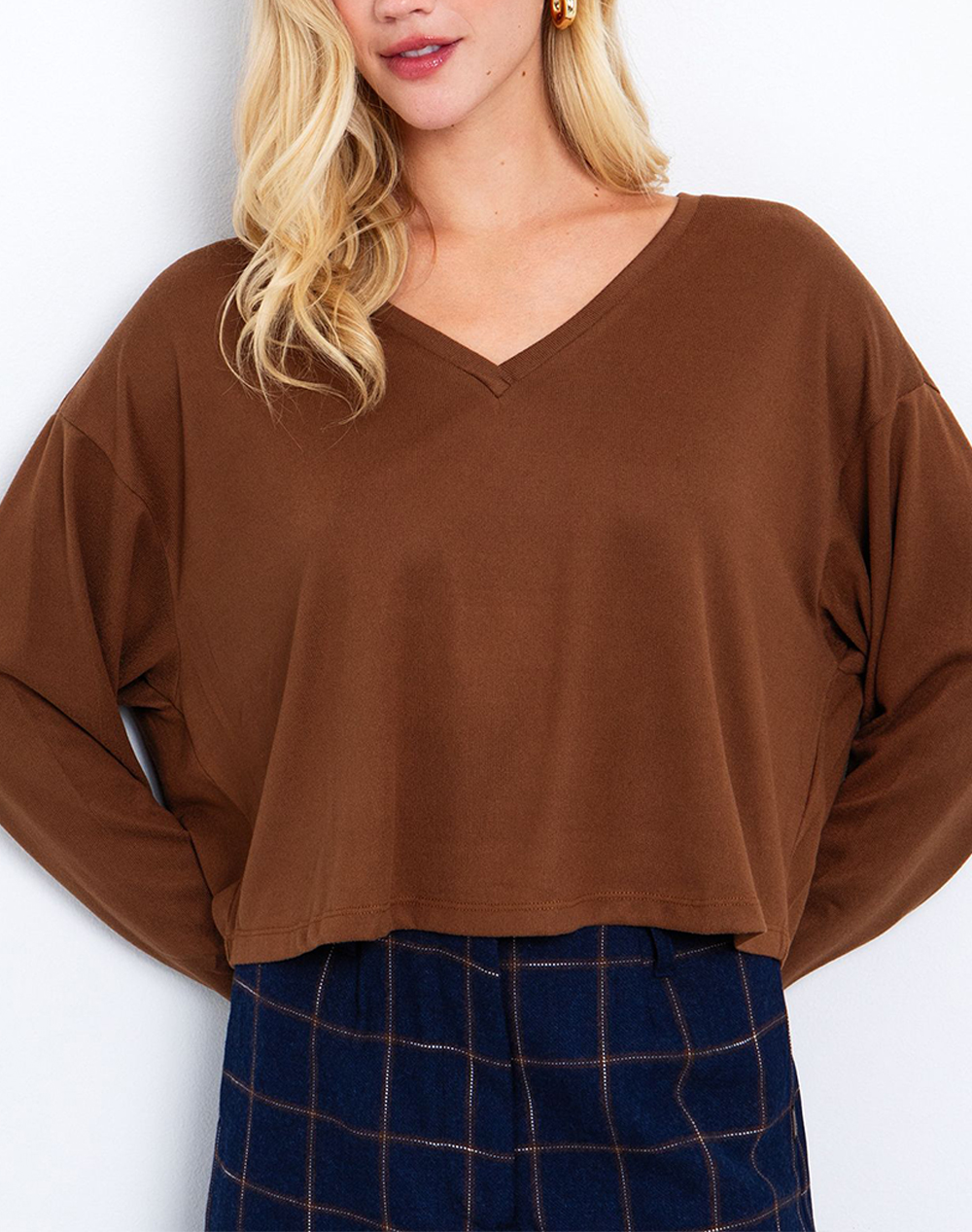 Women's blouse in a wide fit, long sleeves, with a fine knit and V neckline. (Composition: 95% Polyester, 5% Elastane)