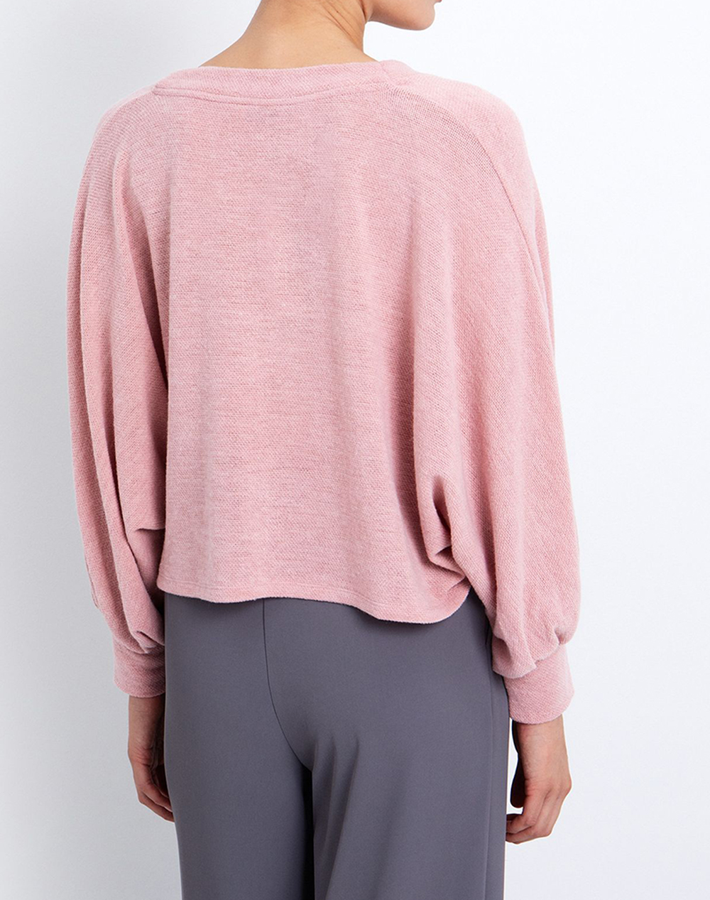 Women's blouse, in a comfortable fit, long sleeves, with a fine knit, with a V-neck and an asymmetrical finish. (Composition: 80% Polyester, 15% Viscose, 5% Elastane)