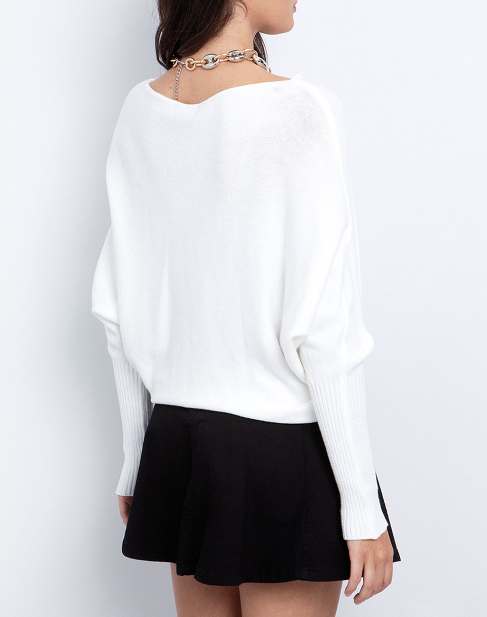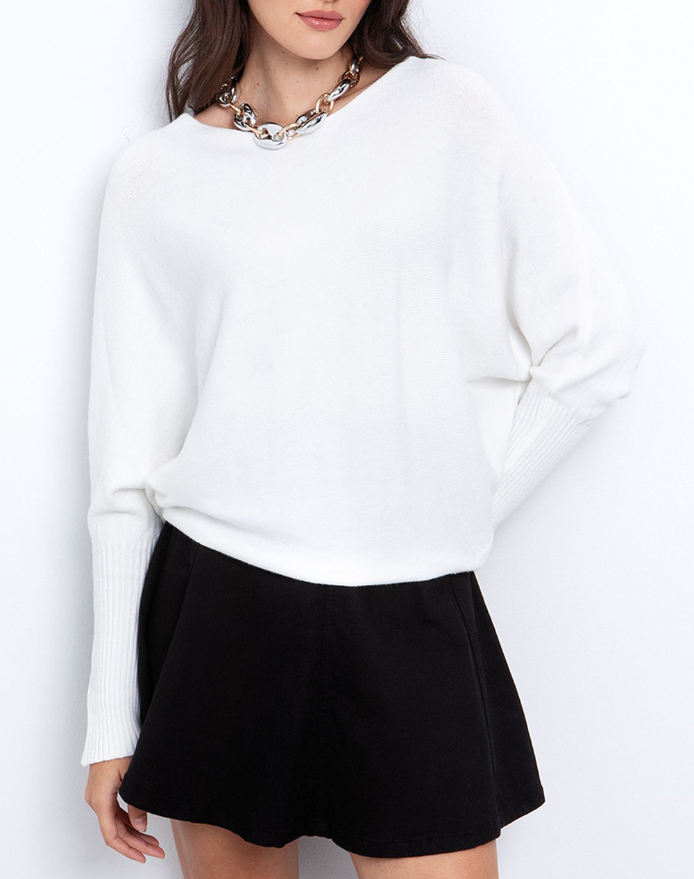 Γυναικεία πλεκτή μπλούζα, σε άνετη γραμμή, μακρυμάνικη, με φαρδιά μανίκια με εφαρμοστή μανσέτα. (Σύνθεση: 52% Βισκόζη, 26% Πολυεστέρας, 22% Πολυαμίδιο)
