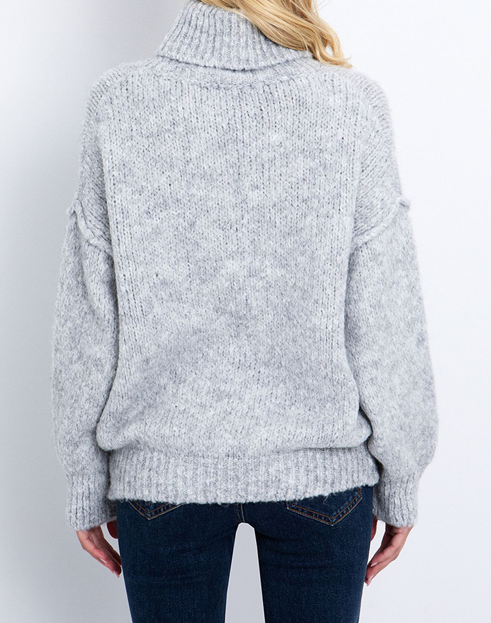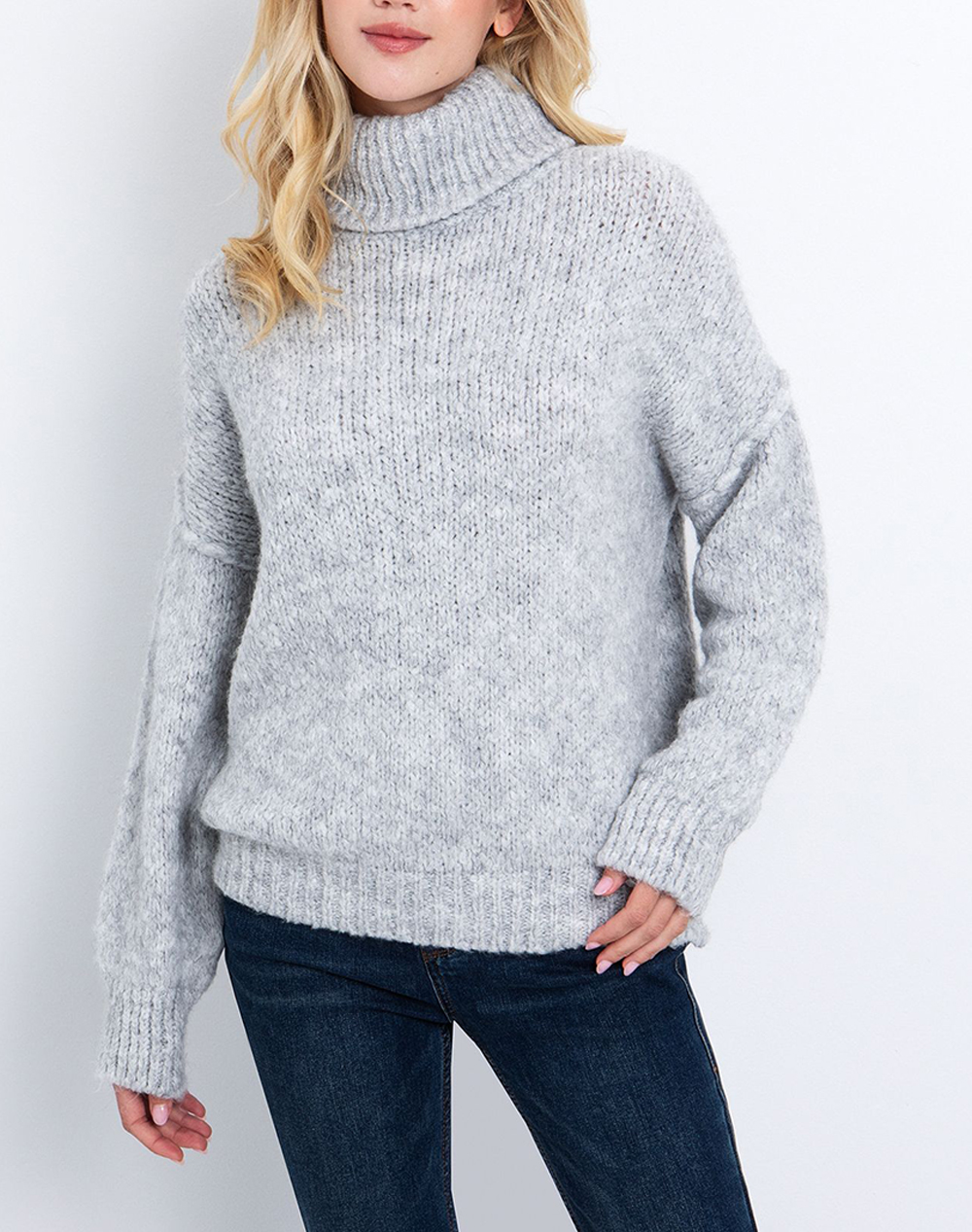 Women's oversized sweater, in a loose fit, long sleeves, with a high neck and ribbed trims. (Composition: 65% Polycarbonates, 17% Polyamide, 9% Wool, 9% Viscose)