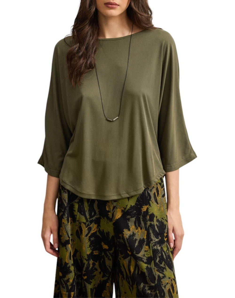Γυναικεία μπλούζα, σε άνετη γραμμή, μονόχρωμη, μακρυμάνικη, με στρογγυλή λαιμόκοψη και διακοσμητικό κολιέ . (Σύνθεση: 68% Μοντάλ, 32% Πολυεστέρας)