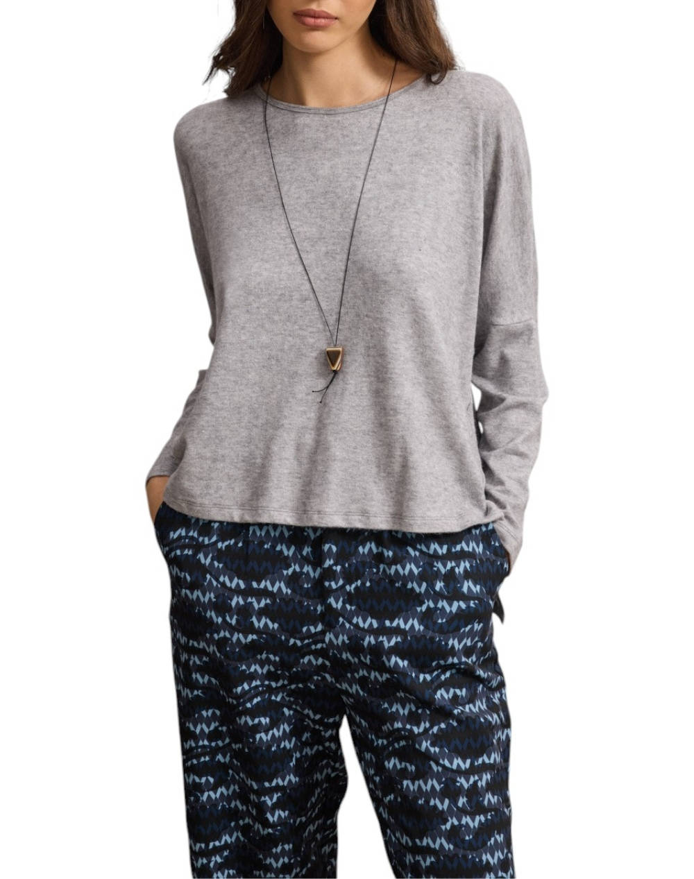 Γυναικεία μπλούζα, σε άνετη γραμμή, μονόχρωμη, μακρυμάνικη, με στρογγυλή λαιμόκοψη και διακοσμητικό κολιέ. (Σύνθεση: 50% Ρεγιόν, 25% Πολυέστερας, 25% Πολυαμίδιο)