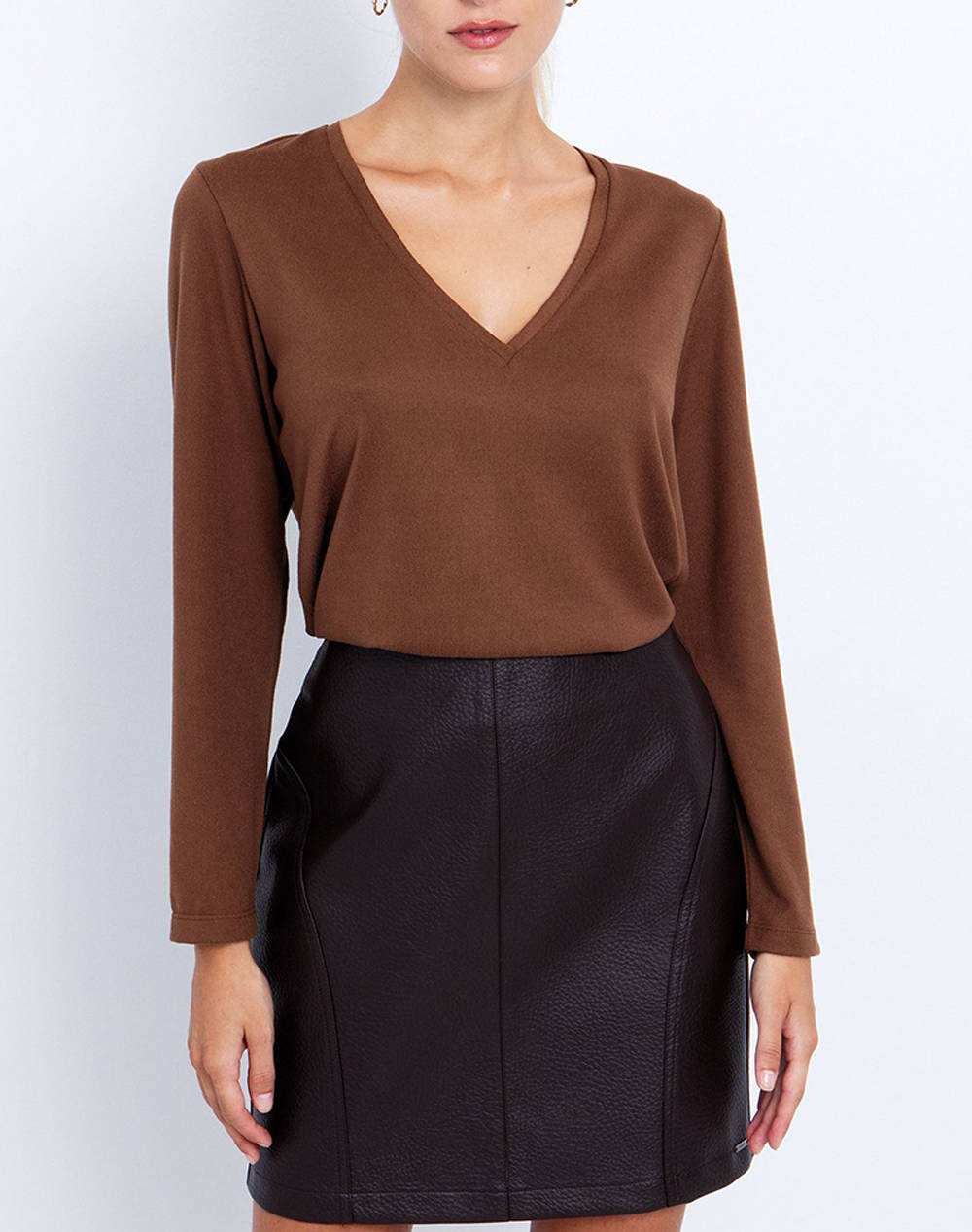 Γυναικεία μπλούζα σε κανονική γραμμή, μακρυμάνικη, με ριπ σχέδιο και V λαιμόκοψη. (Σύνθεση: 95% Πολυεστέρας, 5% Ελαστάνη)