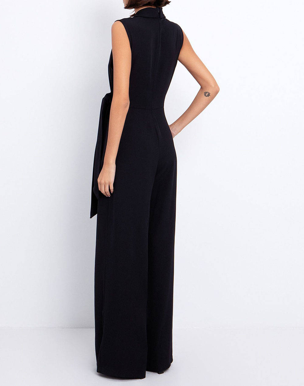 Women's jumpsuit, regular fit, solid color, sleeveless, with a wrap design, side ties, pockets and back closure with hidden zipper. (Composition: 95% Polyester, 5% Elastane)