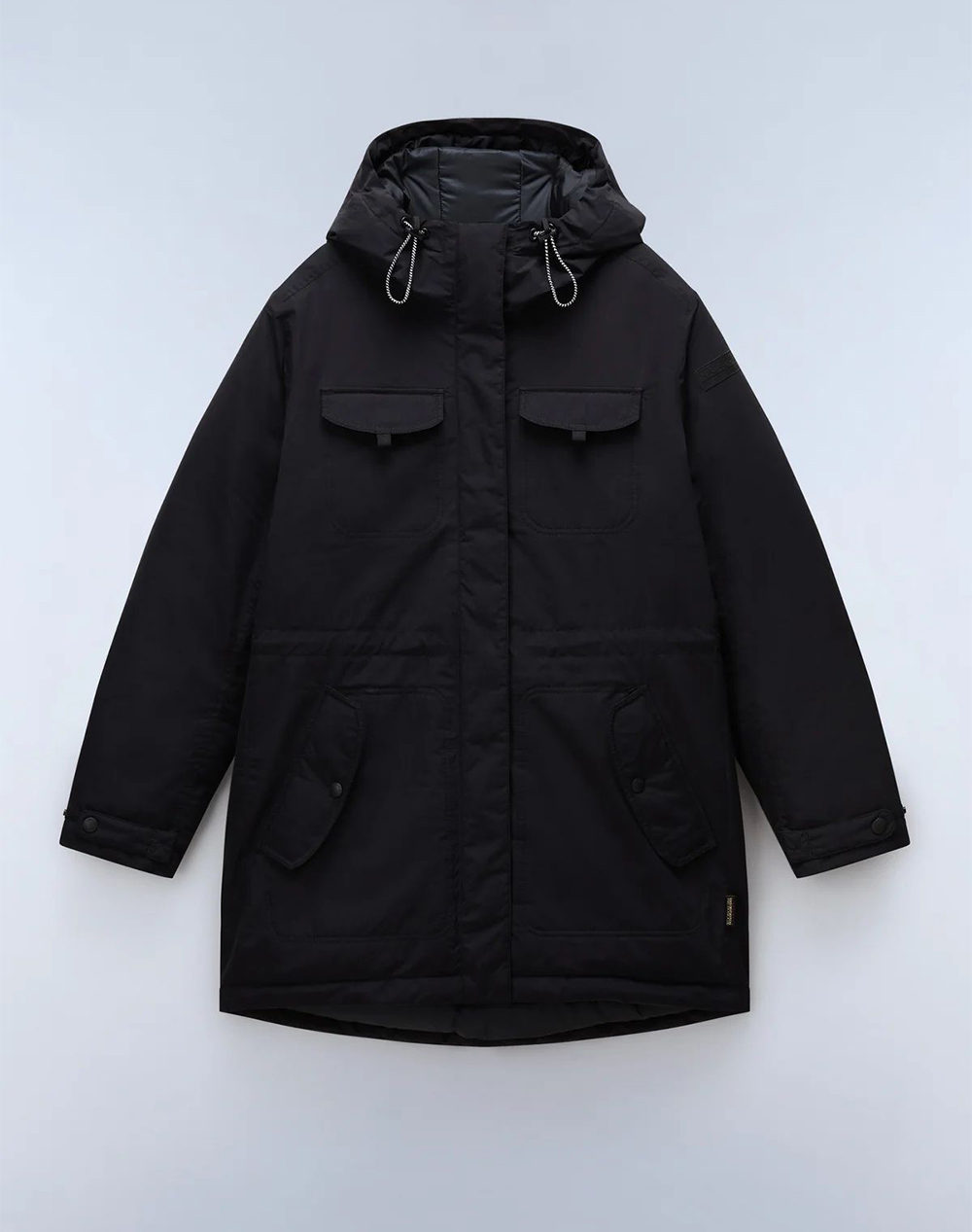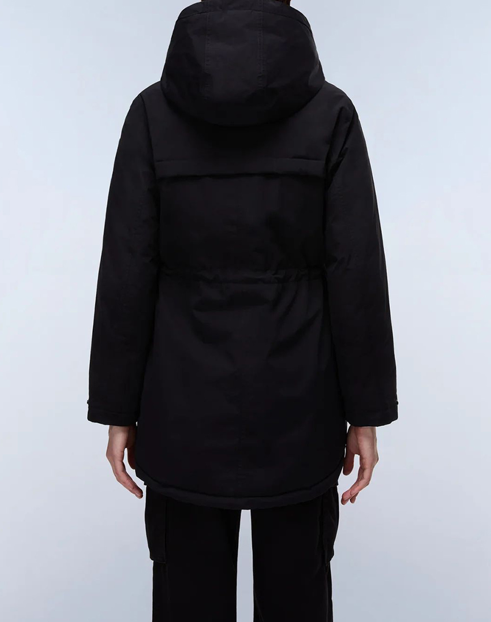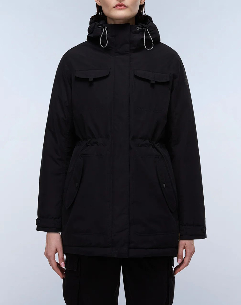 Γυναικείο μπουφάν, σε κανονική γραμμή, μακρυμάνικο, αδιάβροχο, με πολλαπλές τσέπες μπροστά, ρυθμιζόμενη κουκούλα και κλείσιμο με φερμουάρ και κουμπιά.(Σύνθεση: Πολυεστέρας, Βαμβάκι, Μαλλί)