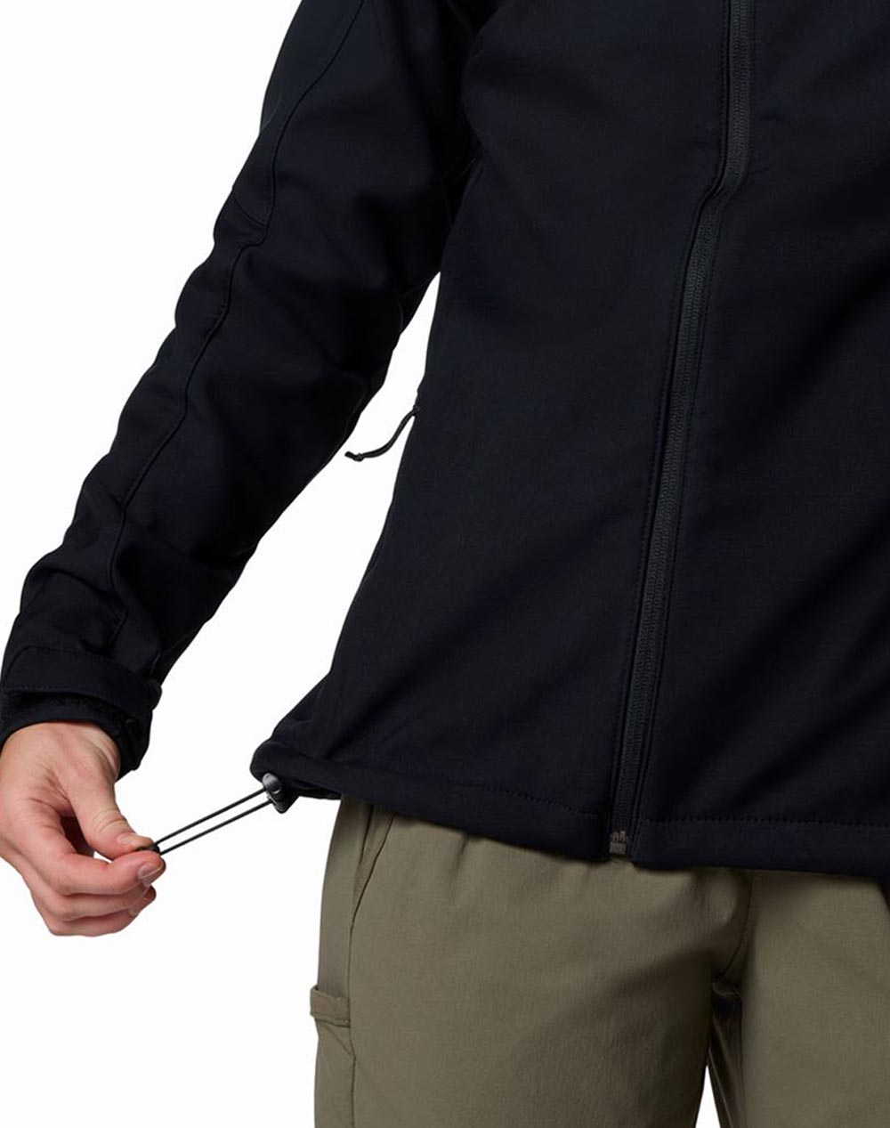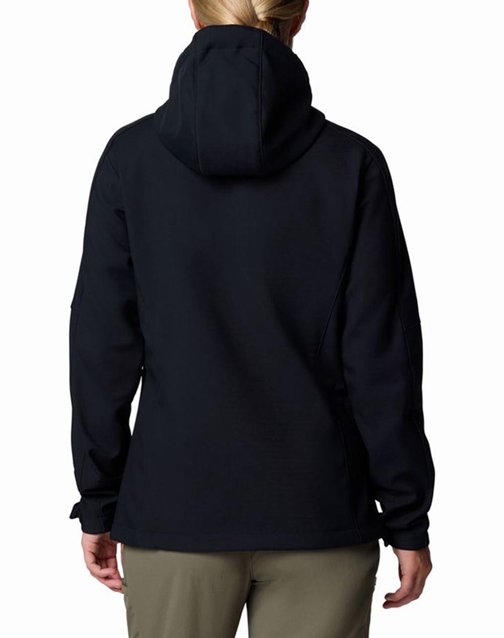 Γυναικείο μπουφάν, αδιάβροχο, σε εφαρμοστή γραμμή, με αποσπώμενη κουκούλα, πλαϊνές τσέπες, ρυθμιζόμενο κορδόνι στη μέση και κλείσιμο κατά μήκος με φερμουάρ. (Σύνθεση: Πολυέστερας softshell)