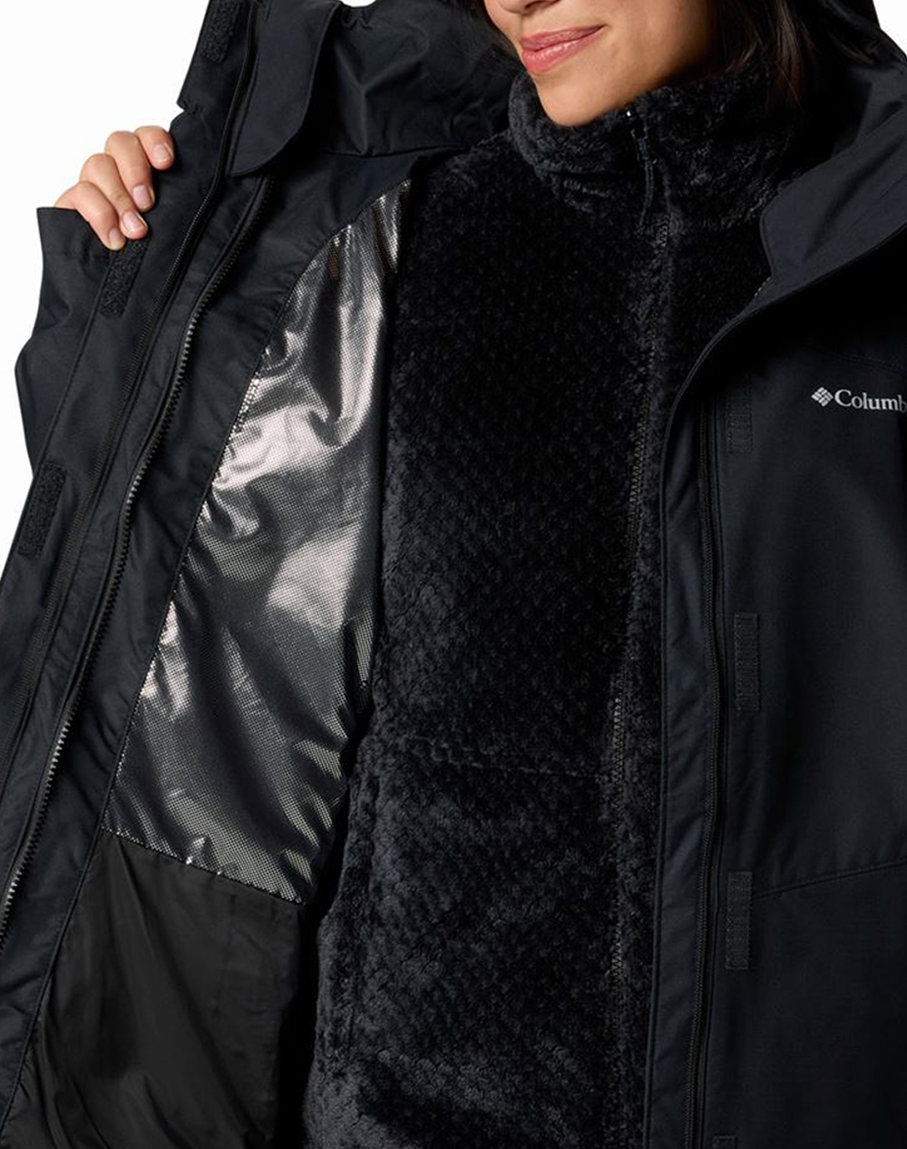 Γυναικείο μπουφάν, σε κανονική γραμμή, με αποσπώμενη κουκούλα, αφαιρούμενη φλις ζακέτα εσωτερικά και κλείσιμο με φερμουάρ και vlecro. (Σύνθεση: 100% Πολυεστέρας Hourglass High Pile Fleece/100% Νάιλον/100% Πολυεστέρας & Φόδρα: 100% Πολυεστέρας Omni-Heat Reflective™ 210T taffeta)