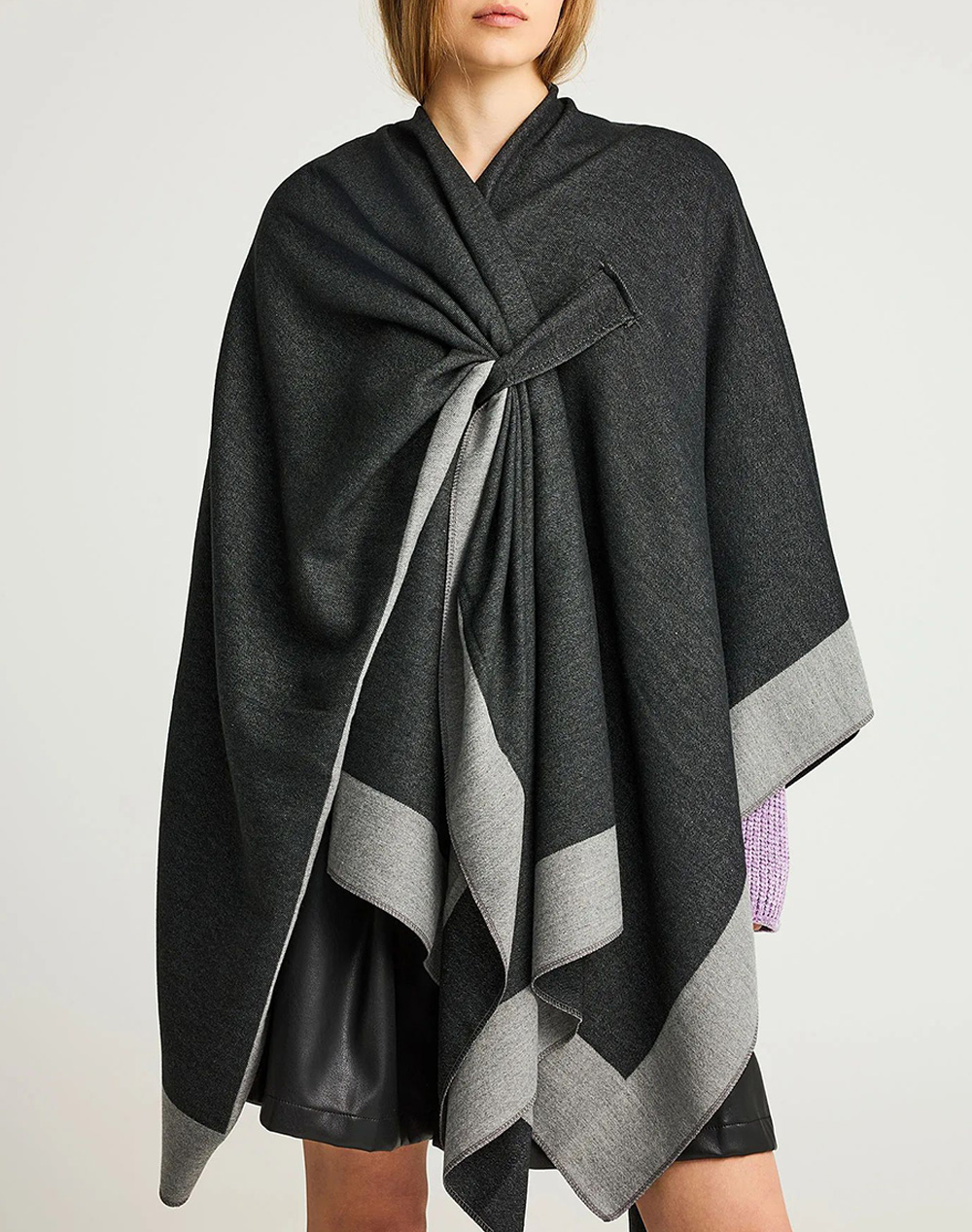 Γυναικεία κάπα, δίχρωμη, σε άνετη γραμμή, με κλείσιμο στην μπροστινή όψη. (Σύνθεση: 85% Πολυεστέρας, 15% Βισκόζη)
