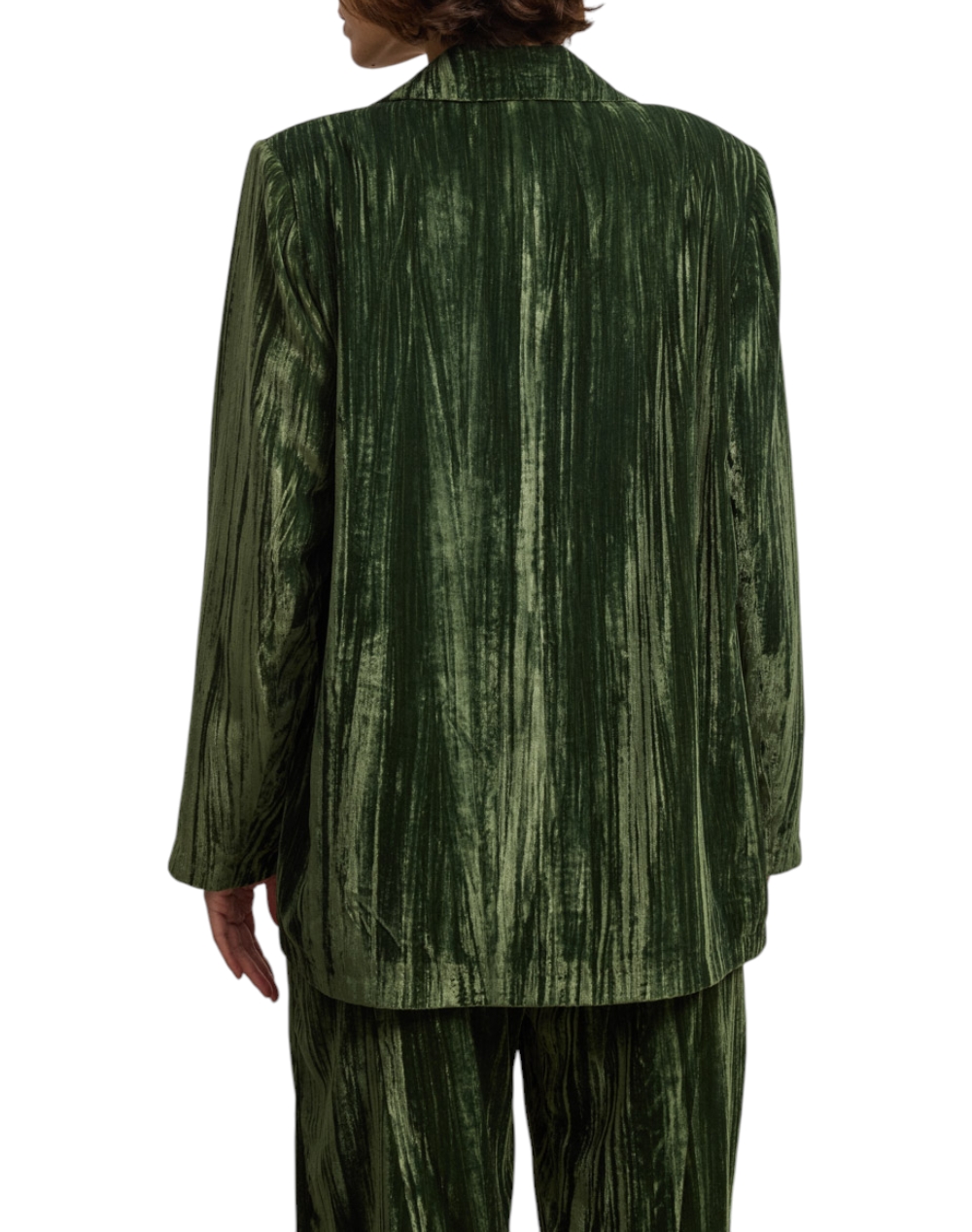 Γυναικείο σακάκι, σε κανονική γραμμή, με απαλό τσαλακωτό βελούδο, πέτο γιακά, διακριτικές μπροστινές τσέπες φιλέτο και κλείσιμο μπροστά με δύο κουμπιά. (Σύνθεση: 100% Πολυεστέρας)