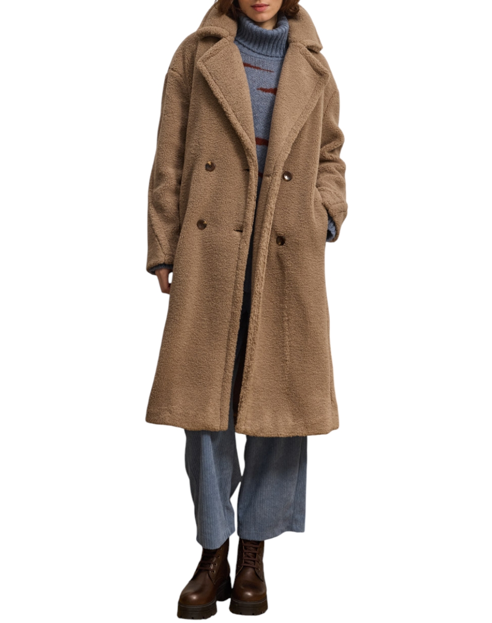 Γυναικείο παλτό, με συνθετικό μαλλί προβάτου, πέτο γιακά, διακριτικές τσέπες και double-breasted κλείσιμο. (Σύνθεση: 100% Πολυεστέρας)