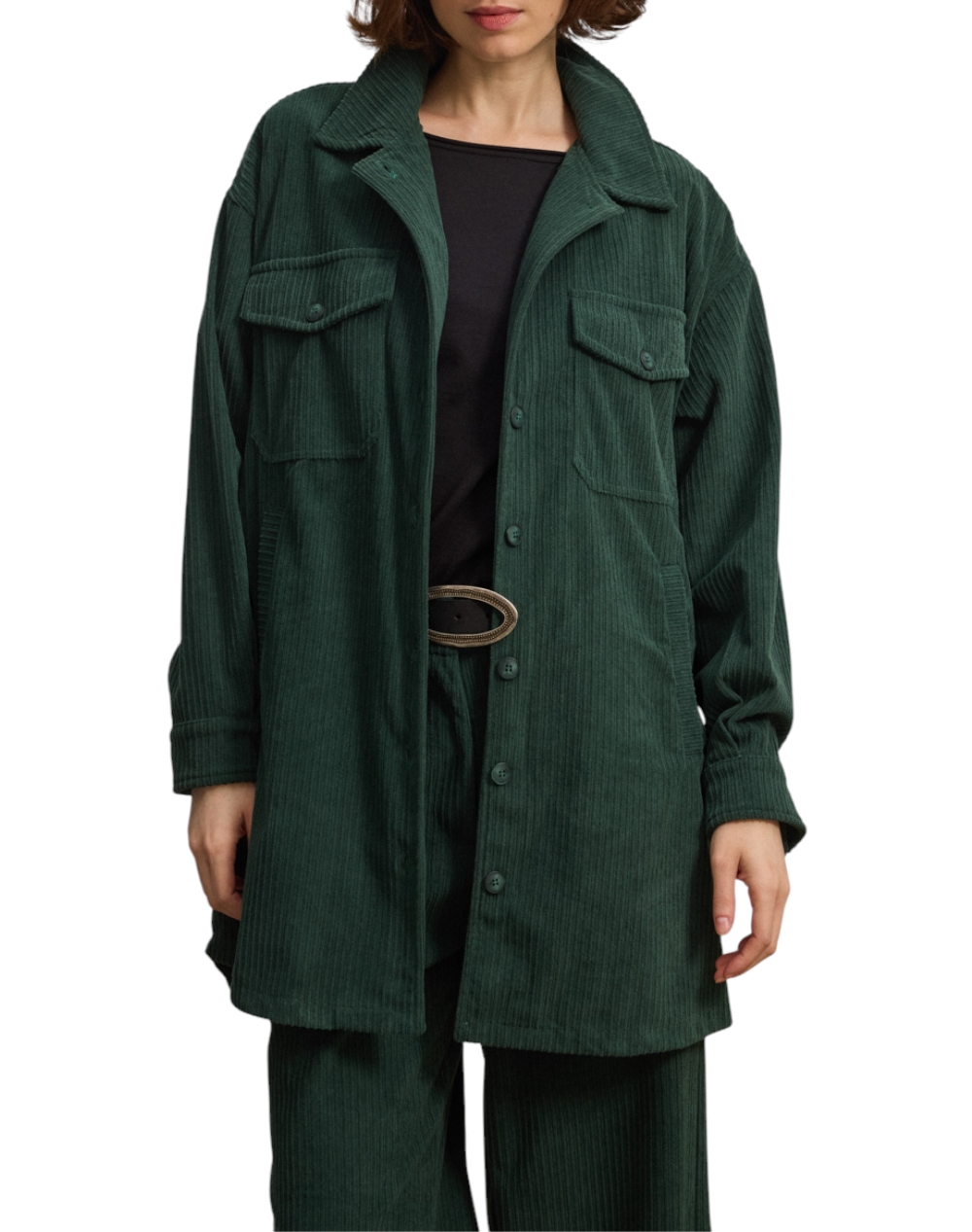 Γυναικείο overshirt, σε άνετη γραμμή, με κοτλέ υφή, κλασικό γιακά, τσέπες στο στήθος και κλείσιμο με κουμπιά μπροστά. (Σύνθεση: 100% Πολυεστέρας)