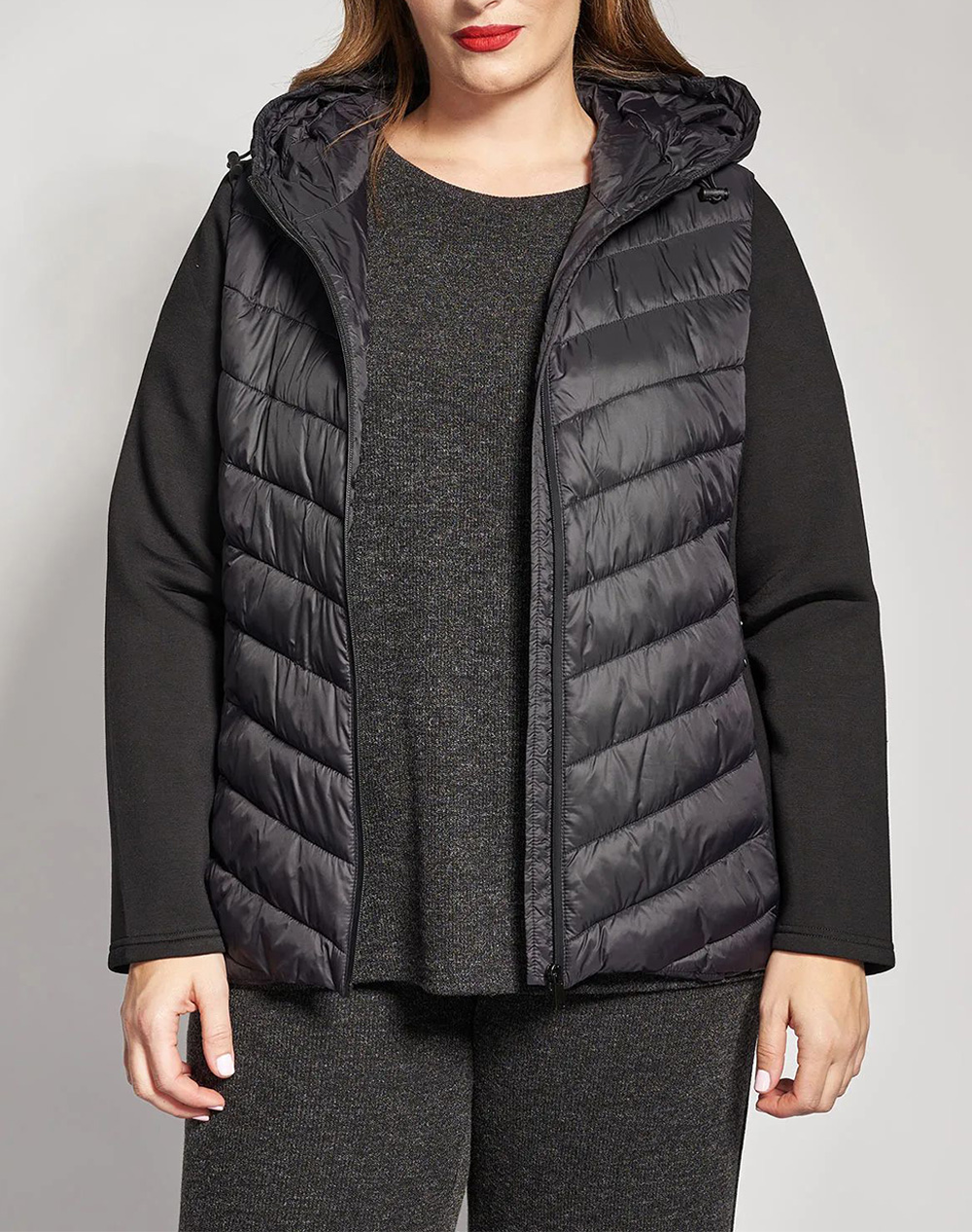 Γυναικείο μπουφάν, με καπιτονέ σχέδιο, κουκούλα, ελαστικά μανίκια και κλείσιμο με φερμουάρ μπροστά. (Σύνθεση: 75% Βισκόζη, 15% Πολυαμίδιο, 10% Σπάντεξ)