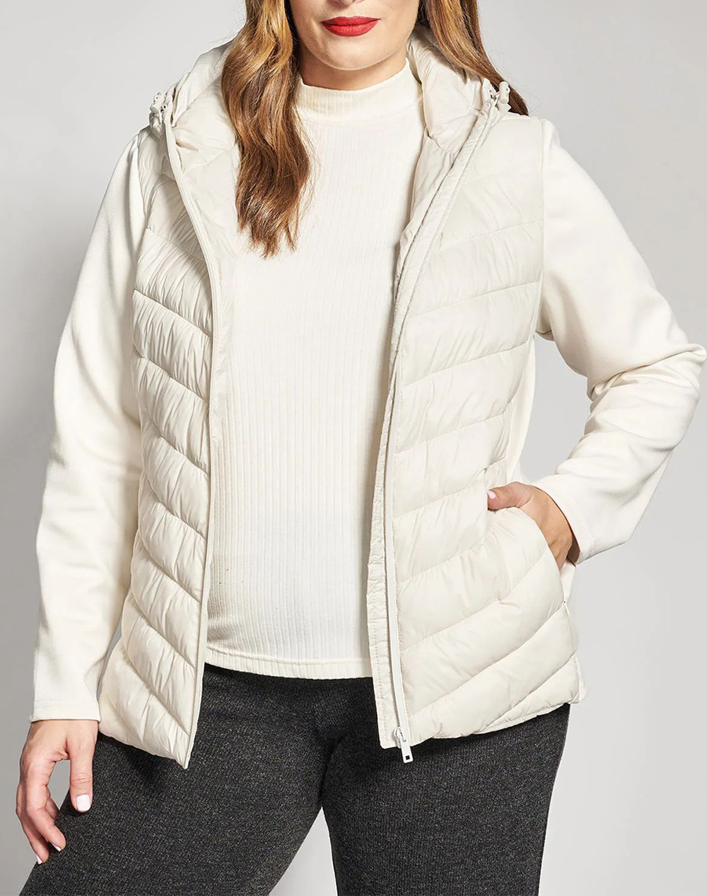 Γυναικείο μπουφάν, με καπιτονέ σχέδιο, κουκούλα, ελαστικά μανίκια και κλείσιμο με φερμουάρ μπροστά. (Σύνθεση: 75% Βισκόζη, 15% Πολυαμίδιο, 10% Σπάντεξ)