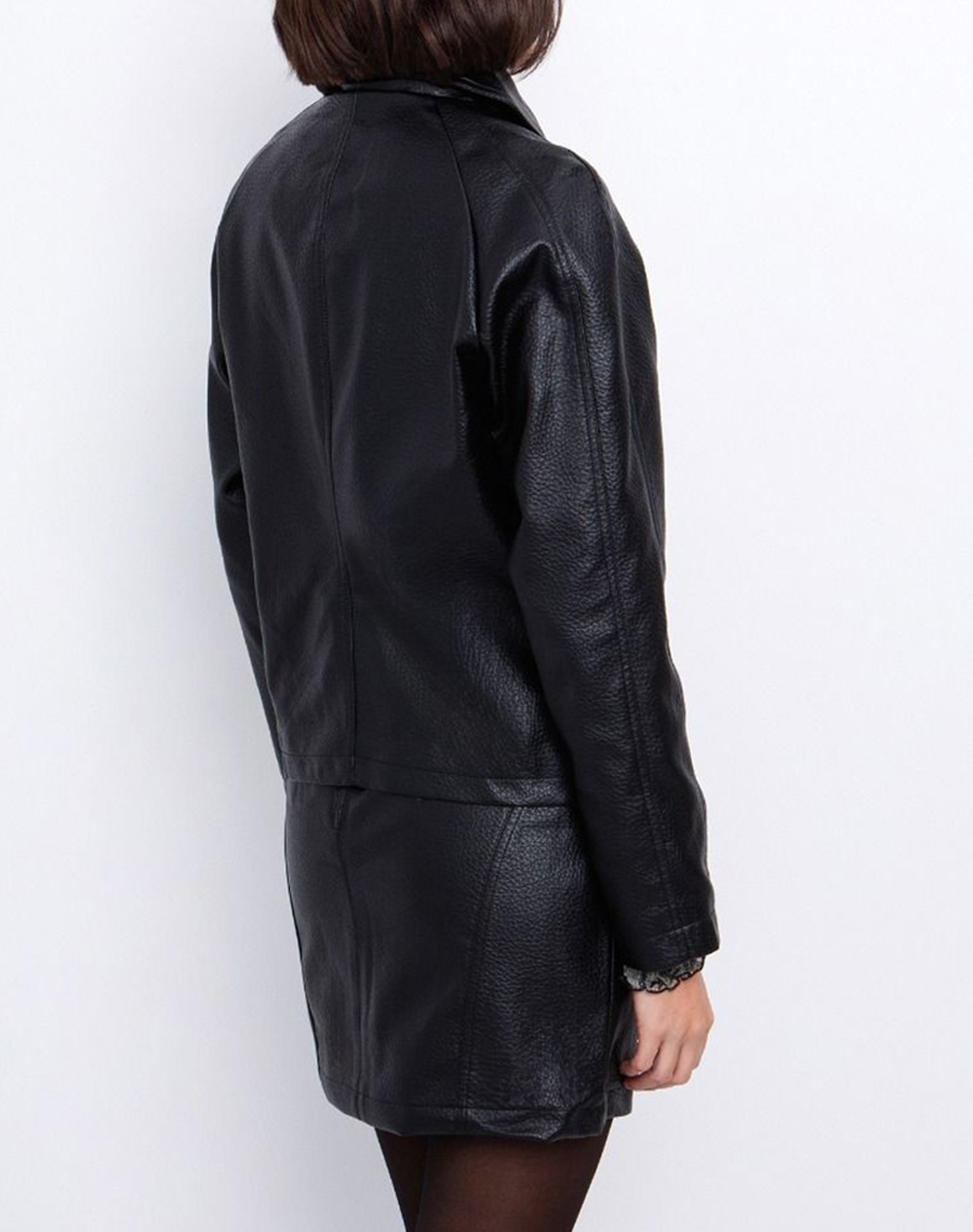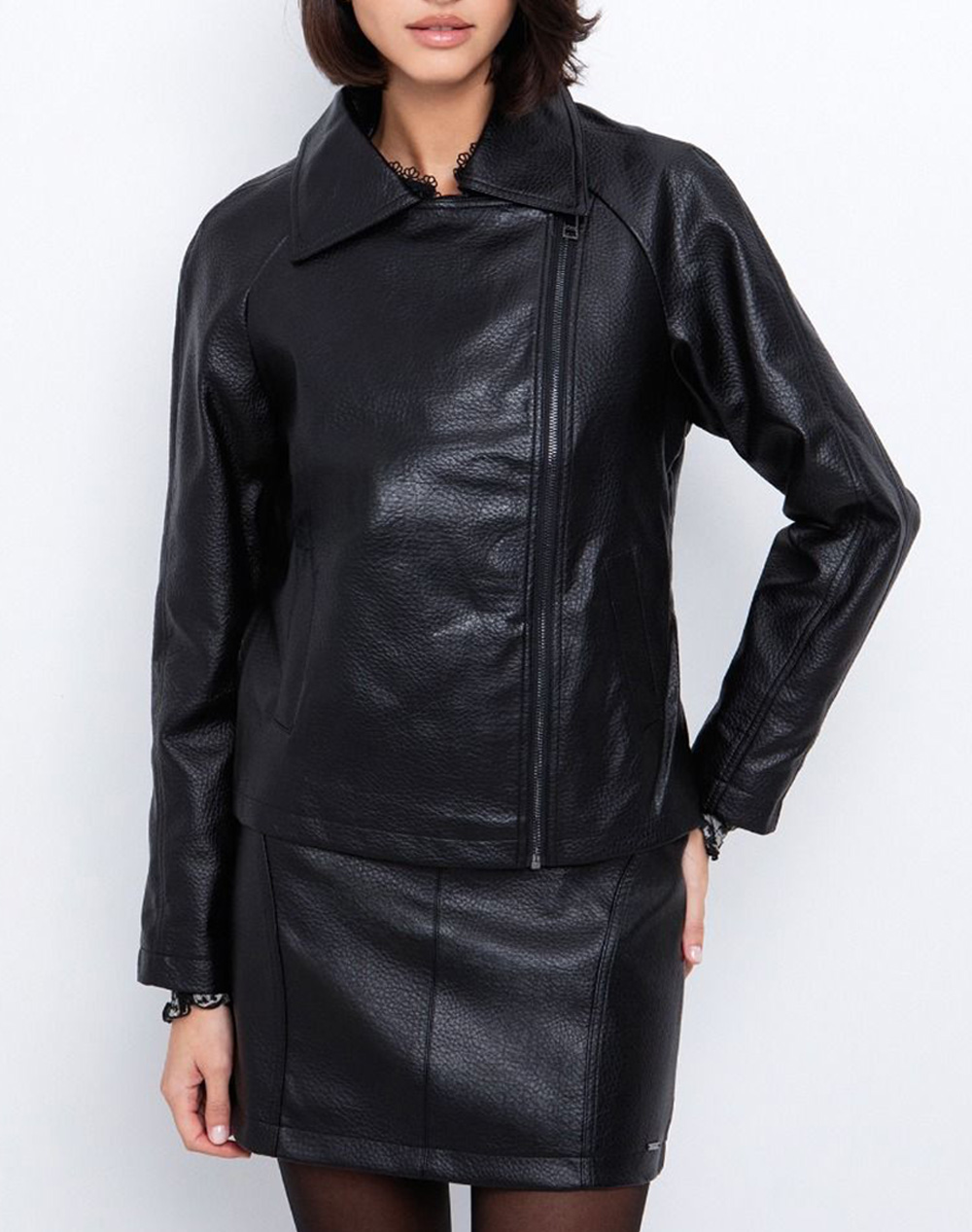Women's jacket, regular fit, with wide collar, embossed leatherette weave and cross-zip closure. (Composition: 100% Polyurethane)