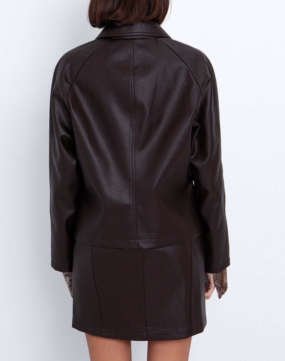 Women's jacket, regular fit, with wide collar, embossed leatherette weave and cross-zip closure. (Composition: 100% Polyurethane)