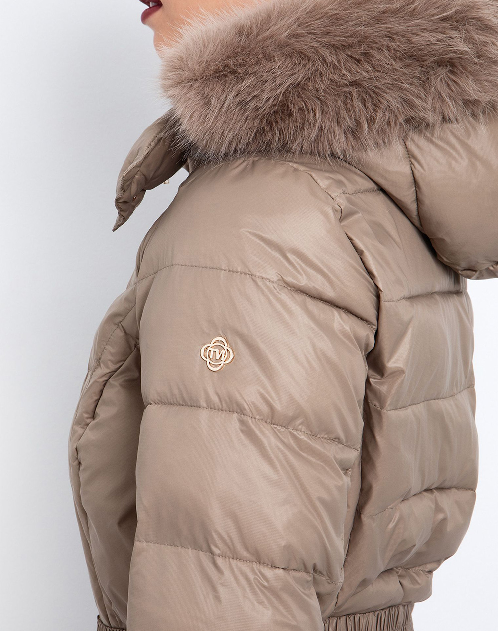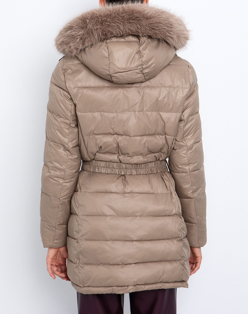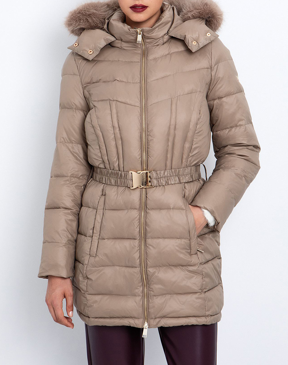 Γυναικείο μπουφάν, σε κανονική γραμμή, με αποσπώμενη κουκούλα με συνθετική γούνα, ζώνη στη μέση και κλείσιμο μπροστά με φερμουάρ. (Σύνθεση: 100% Πολυαμίδιο)