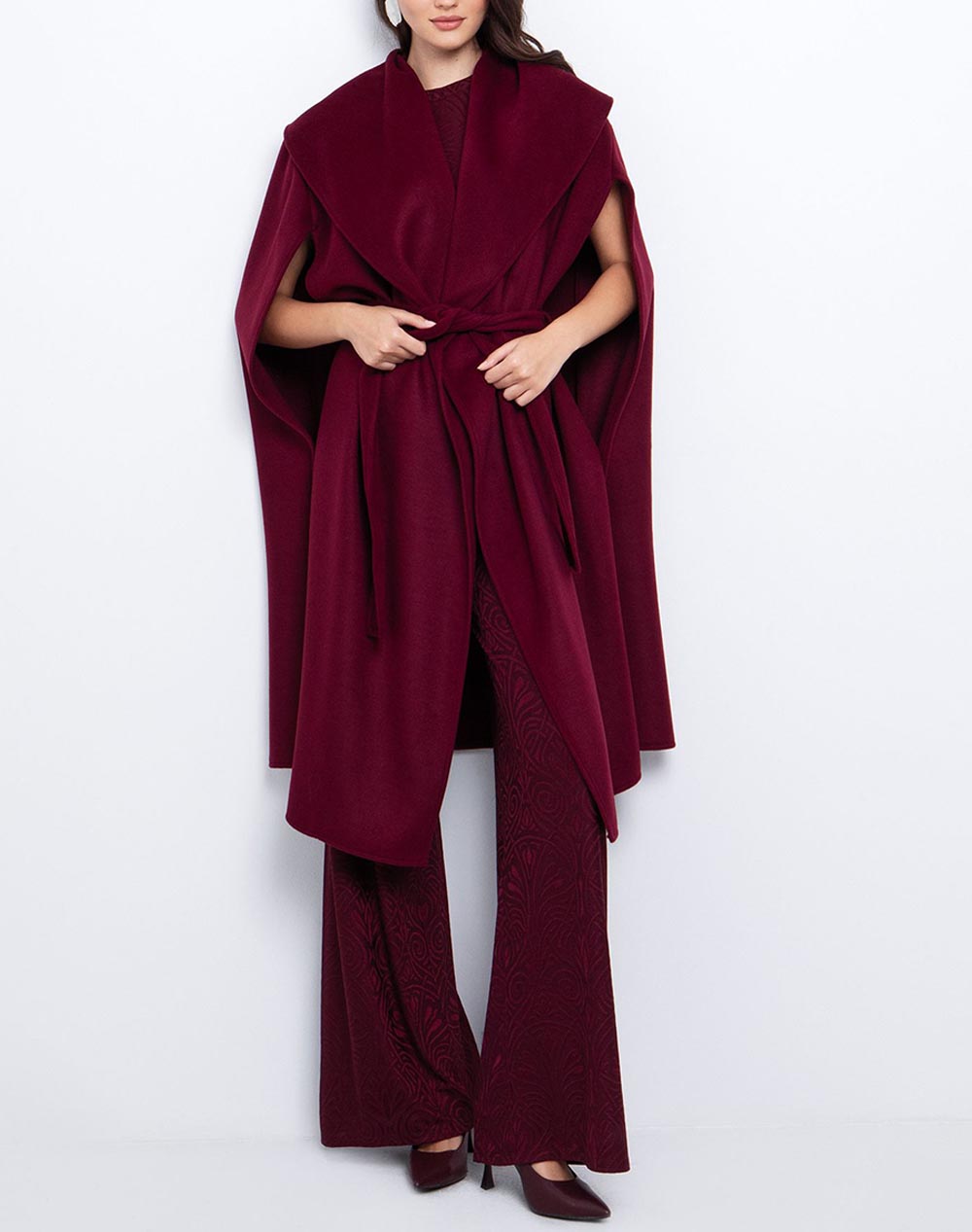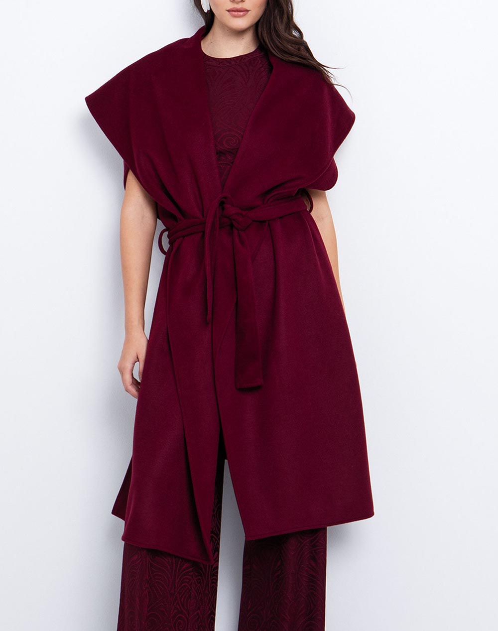 Γυναικεία κάπα, σε άνετη γραμμή, αμάνικη, με φαρδύ γιακά πέτο και ασορτί ζώνη στη μέση. (Σύνθεση: 87% Πολυεστέρας, 13% VI)