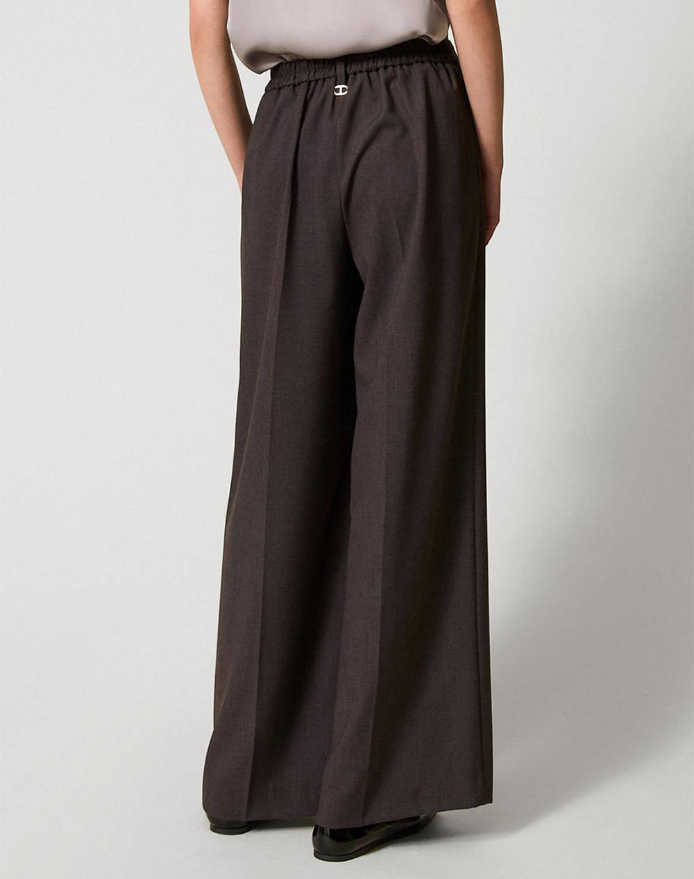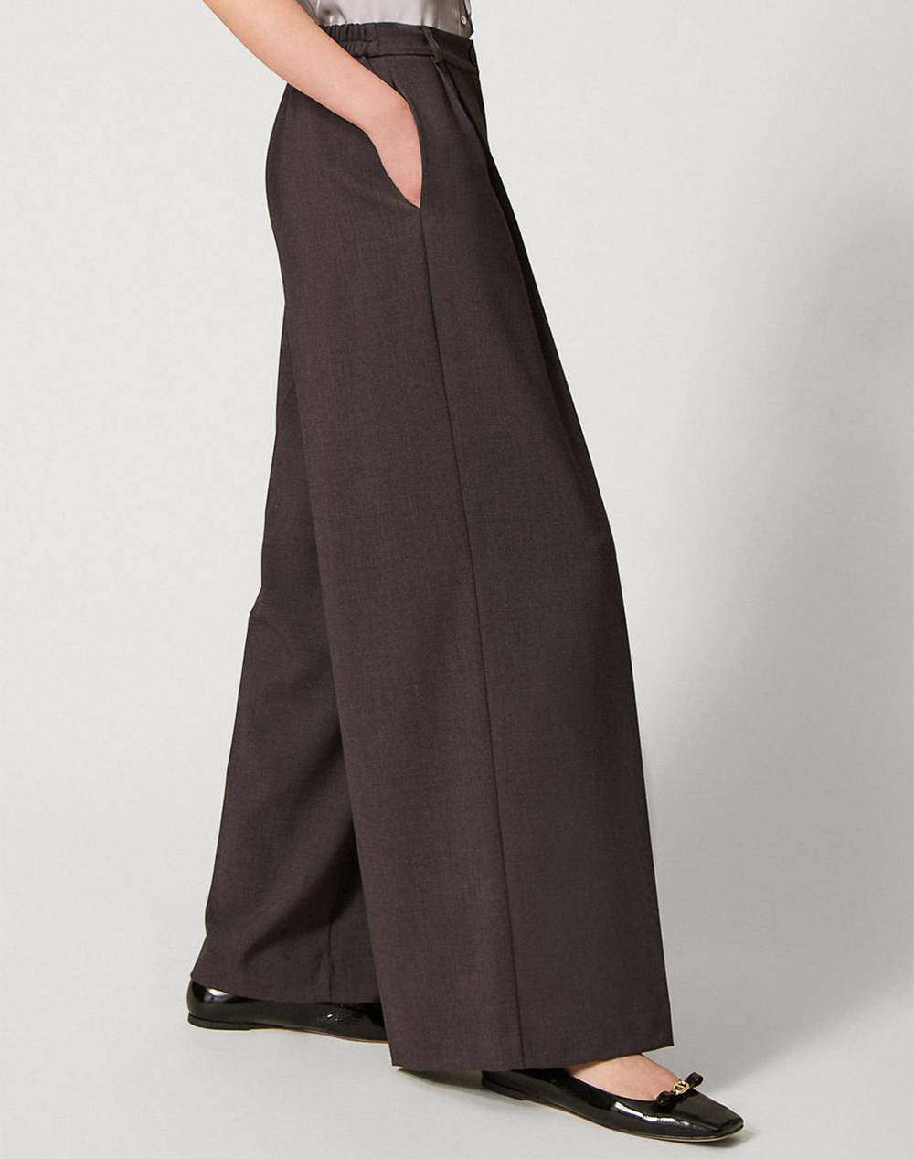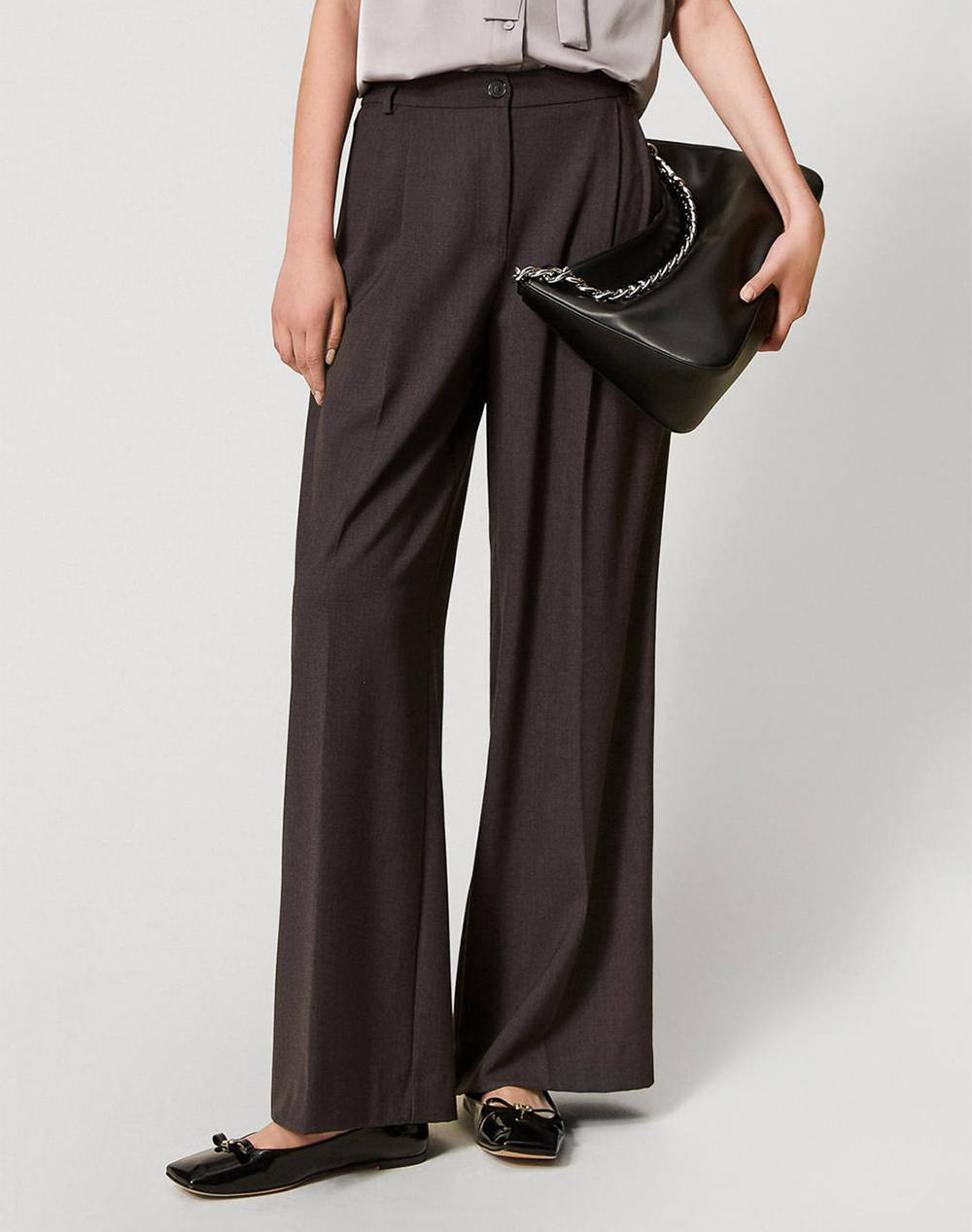 Women's wide-leg trousers with pleats at the front and a zipper and button closure. (Composition: 63% polyester, 33% viscose, 4% elastane)