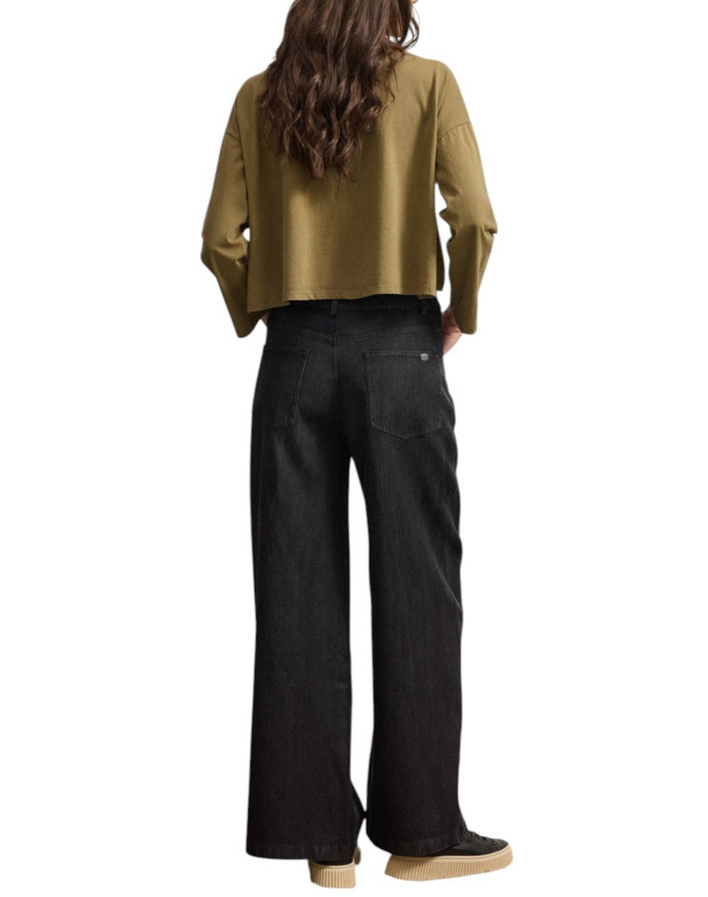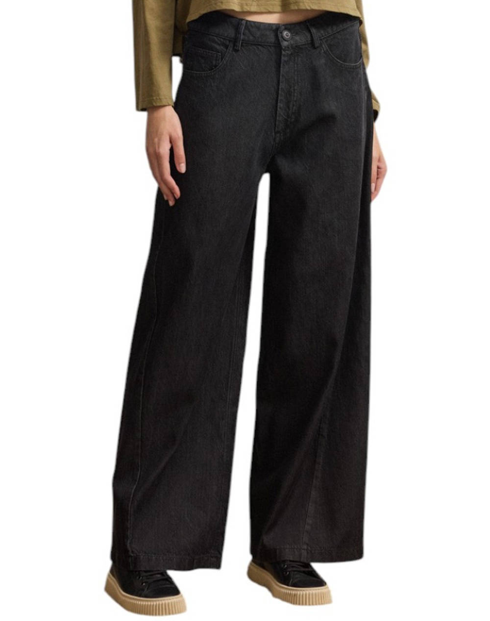 Γυναικείο τζιν παντελόνι, σε φαρδιά γραμμή, μονόχρωμο, με τσέπες και κλείσιμο με φερμουάρ και κουμπί. (Σύνθεση:70% Λυοσέλ, 30% βαμβάκι)