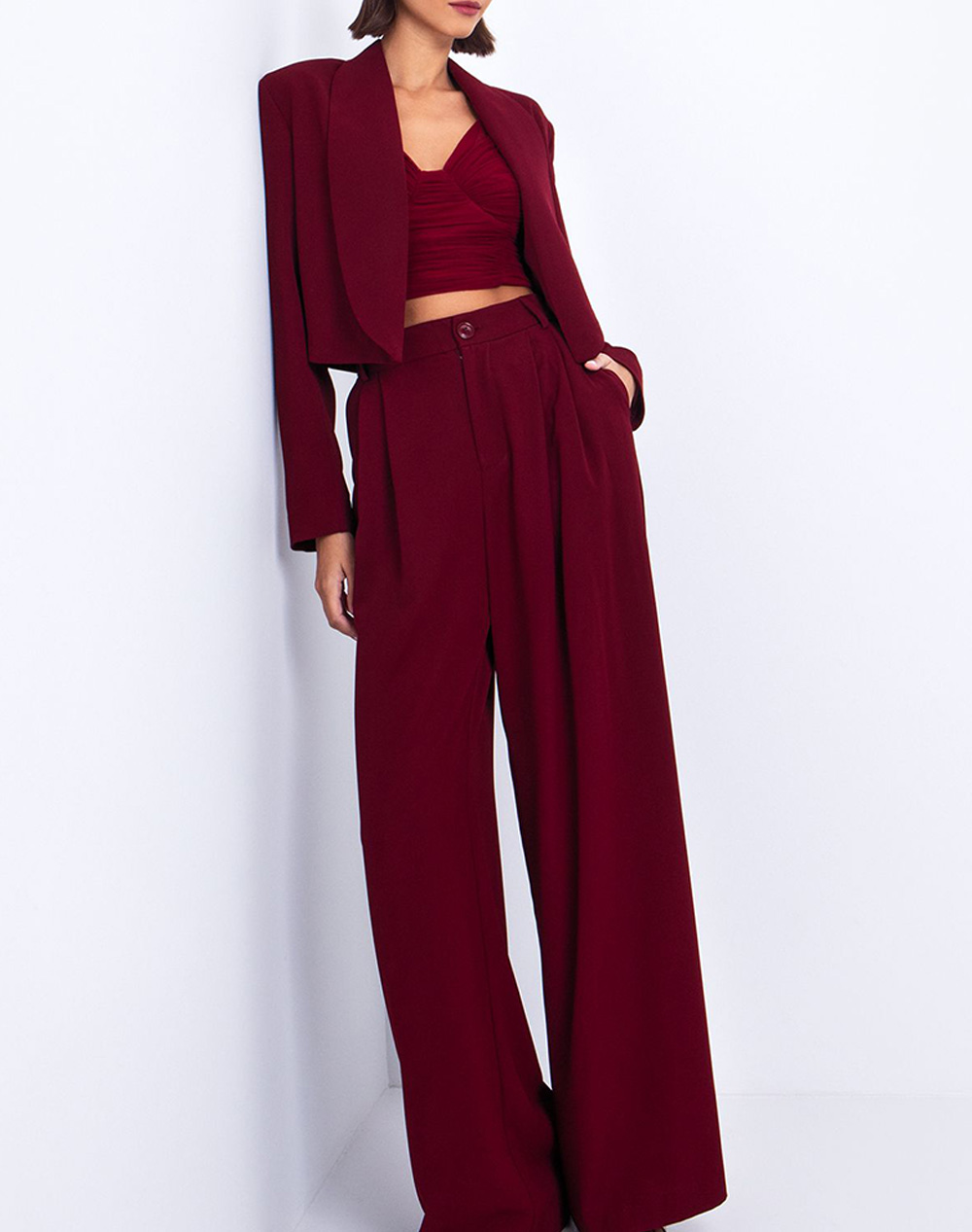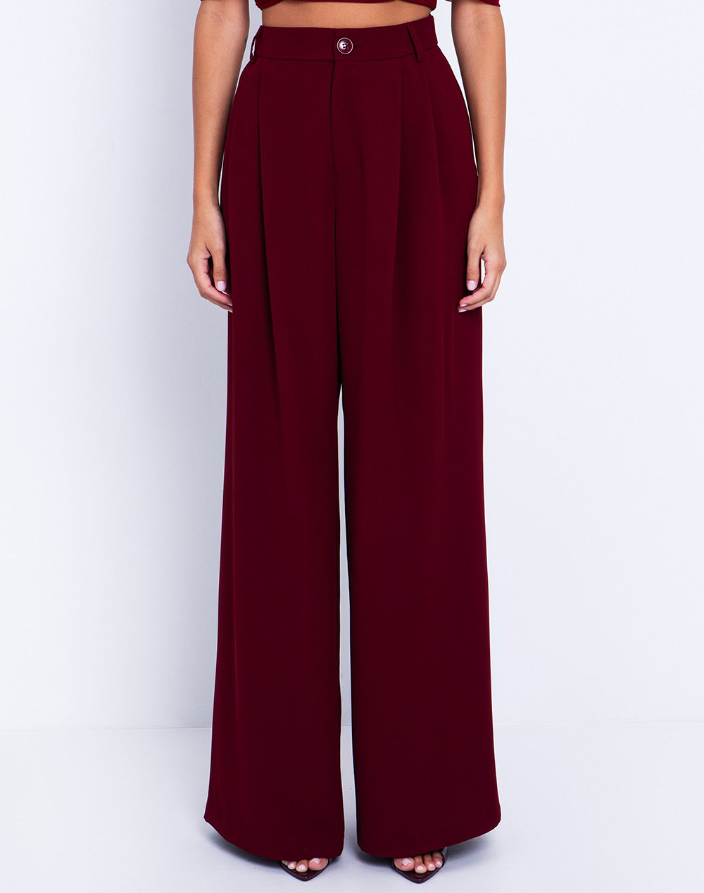 Γυναικείο παντελόνι, σε φαρδιά γραμμή, ψηλόμεσο, με πλαϊνές τσέπες και κλείσιμο με κουμπί και φερμουάρ. (Σύνθεση: 100% Πολυεστέρας)
