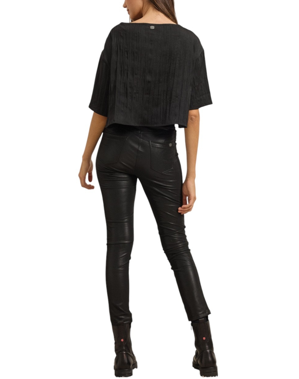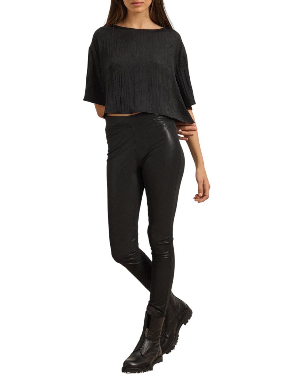 Women's leggings, slim fit, with back pockets and elastic waist. (Composition: 50% Synthetic Leather, 48% Polyester, 2% Elastane)