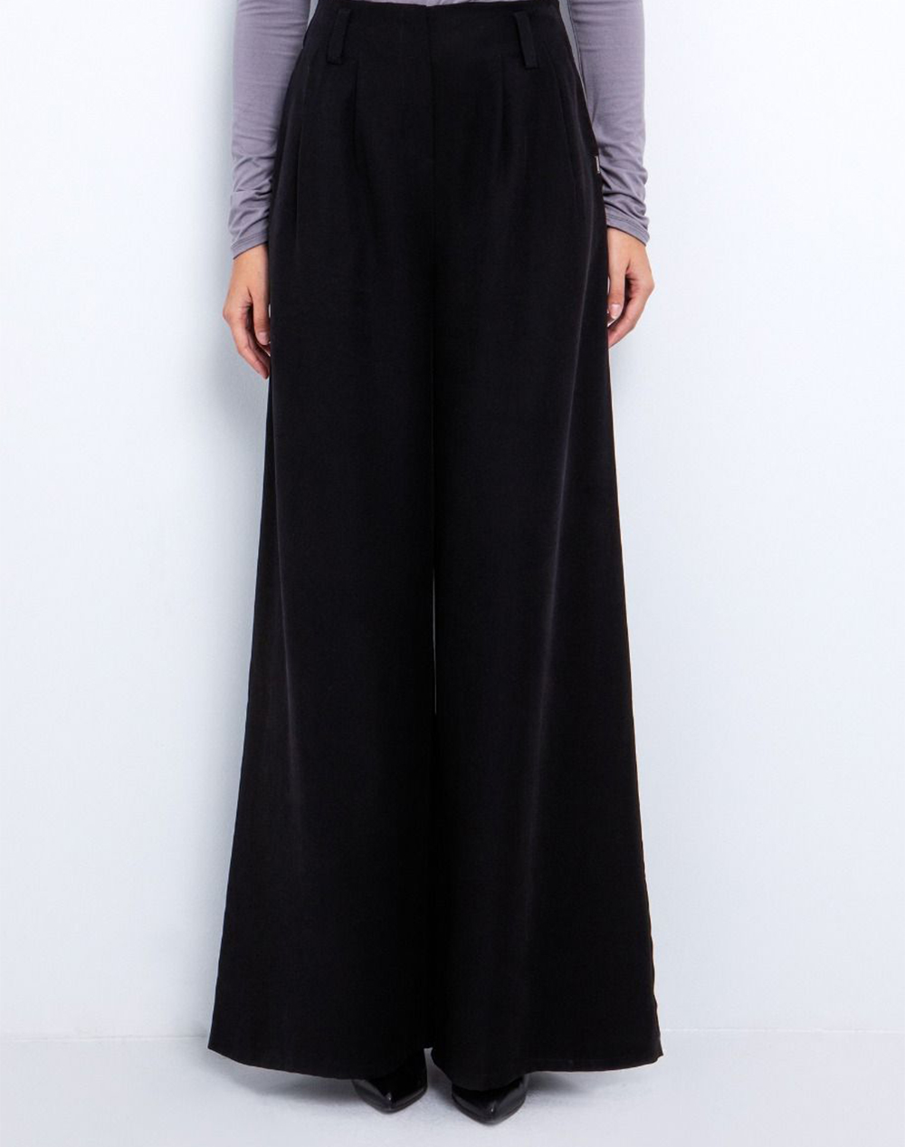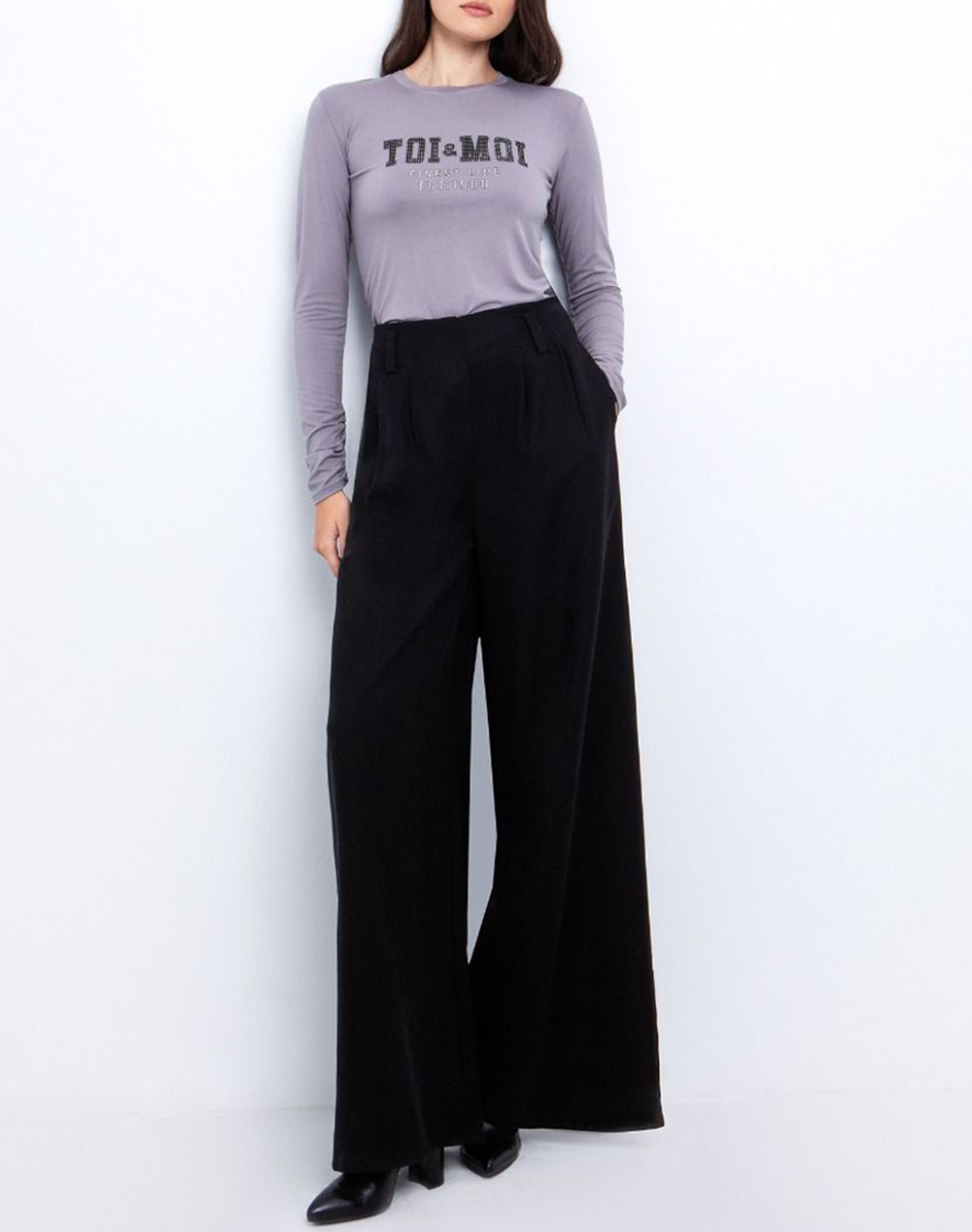 Women's trousers, in a comfortable fit, high waist, with pleats on the front and a zipper and button closure. (Composition: 93% Viscose, 7% Polyester)