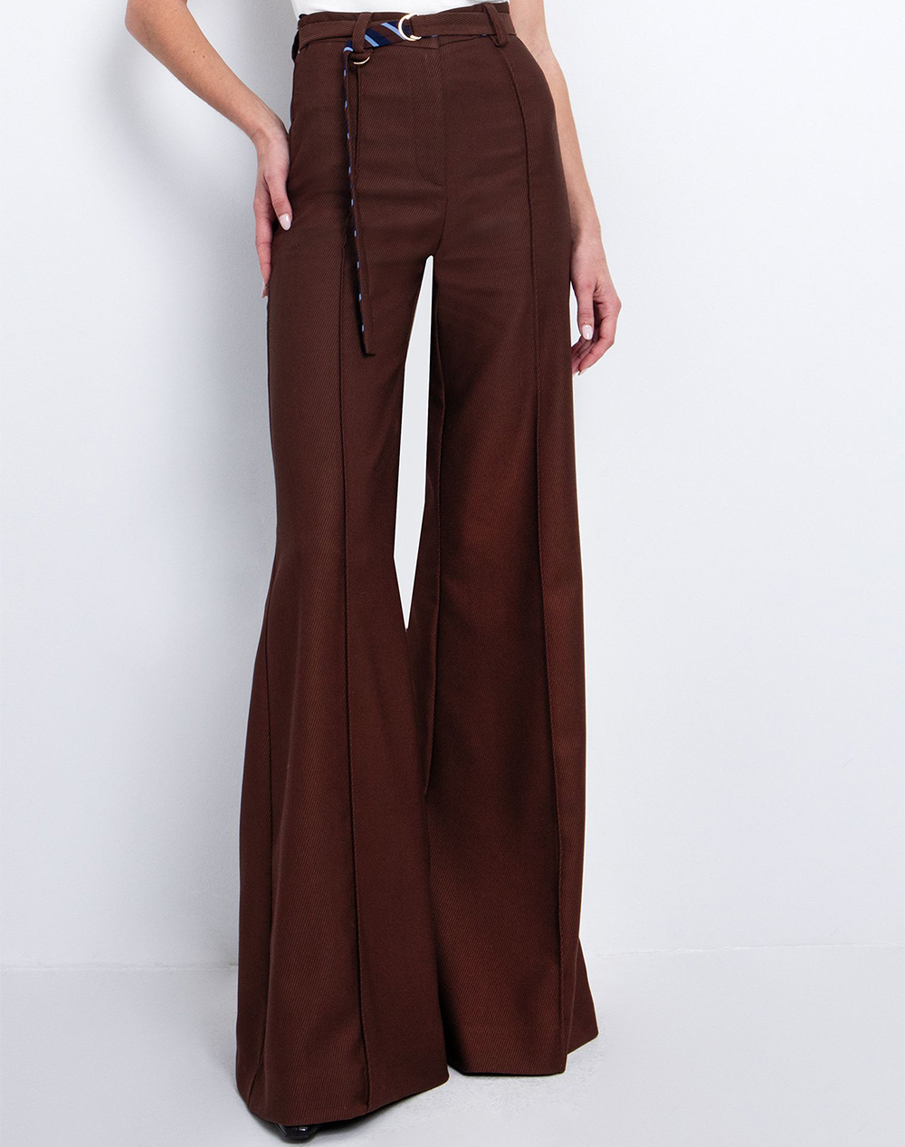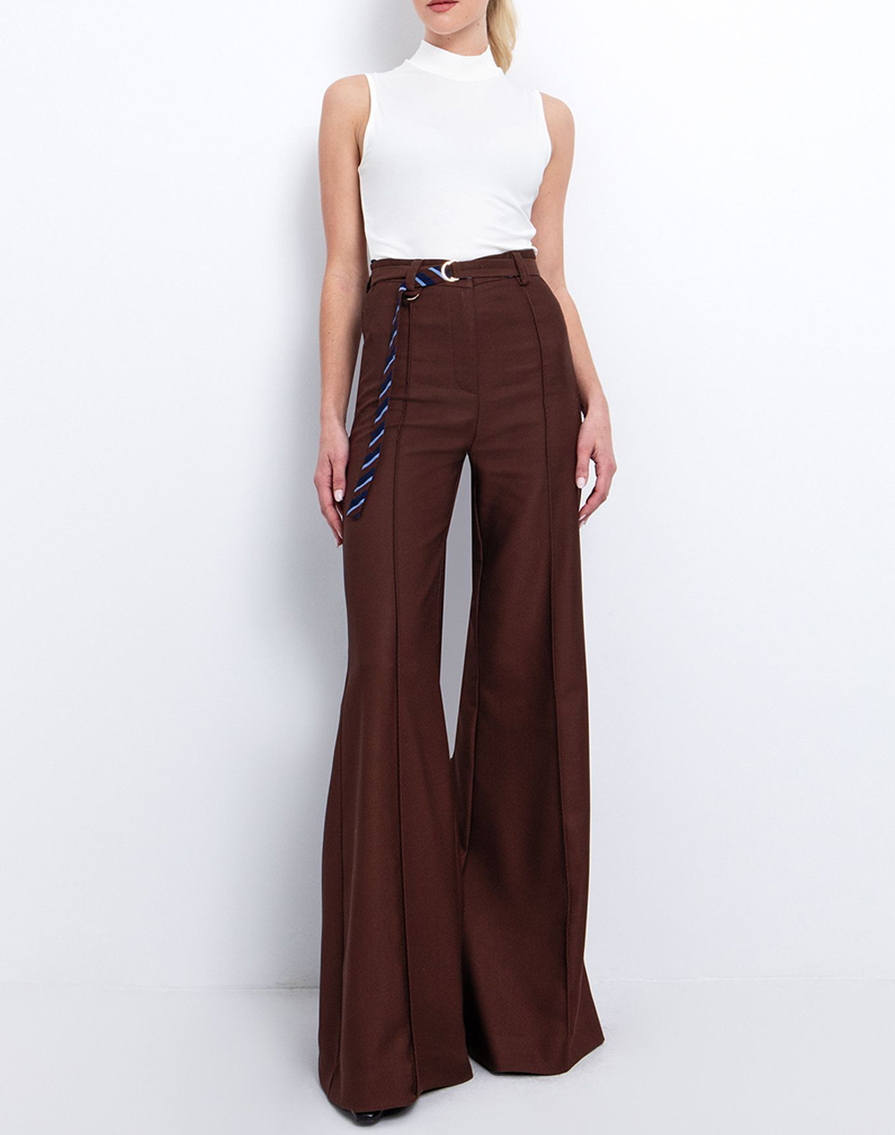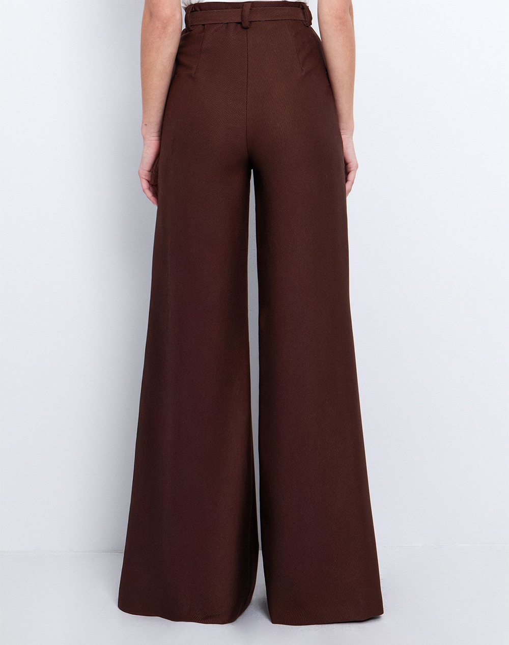 Women's trousers, high waisted, with front vertical seam, belt at the waist and zipper and button closure. (Composition: 76% Polyester, 21% Viscose, 3% Elastane)