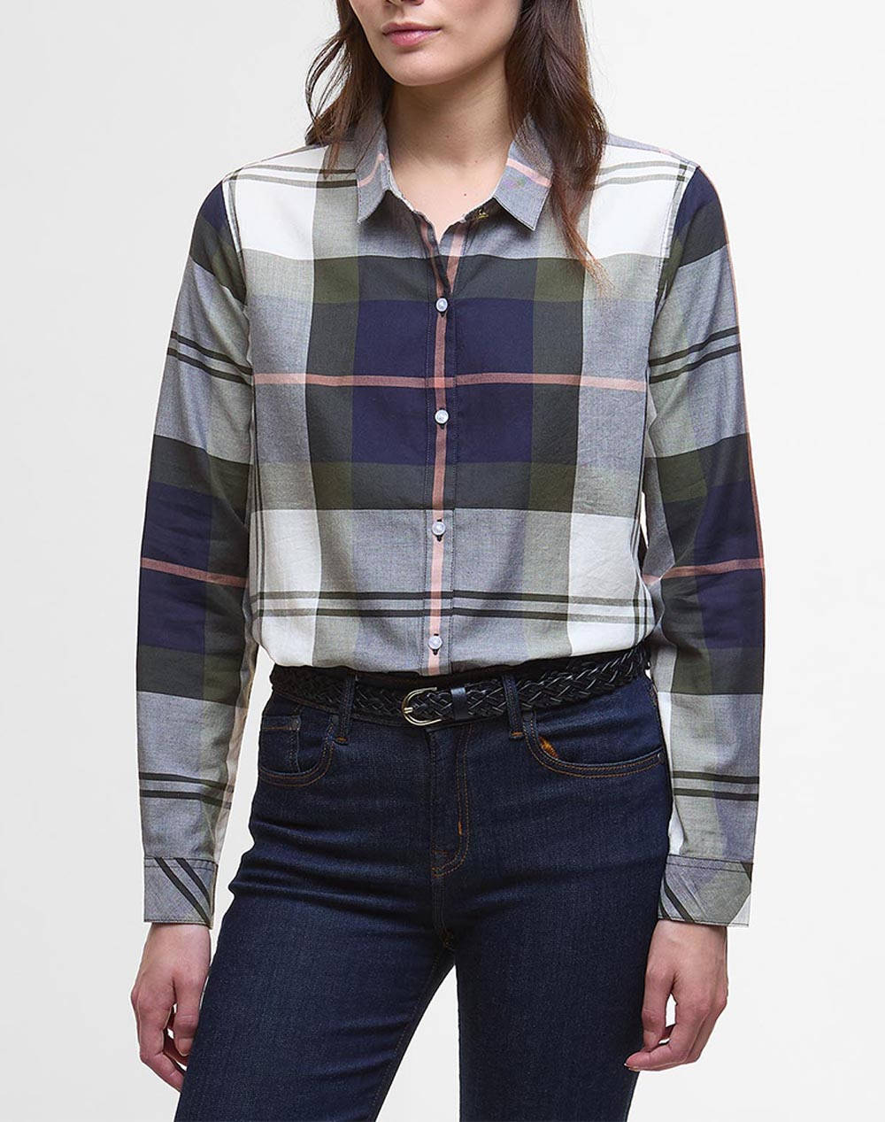 Women's shirt, in a loose fit, long sleeves, with a checkered pattern and button closure along the length. (Composition: 100% Cotton)