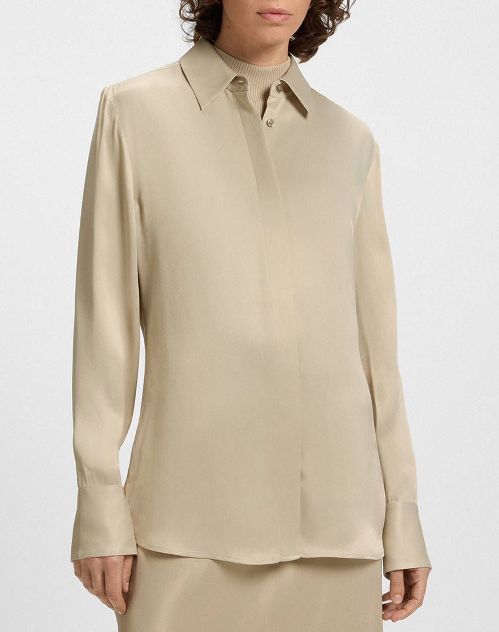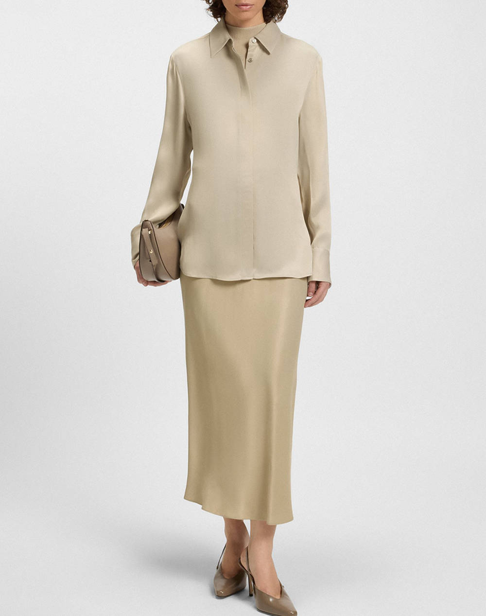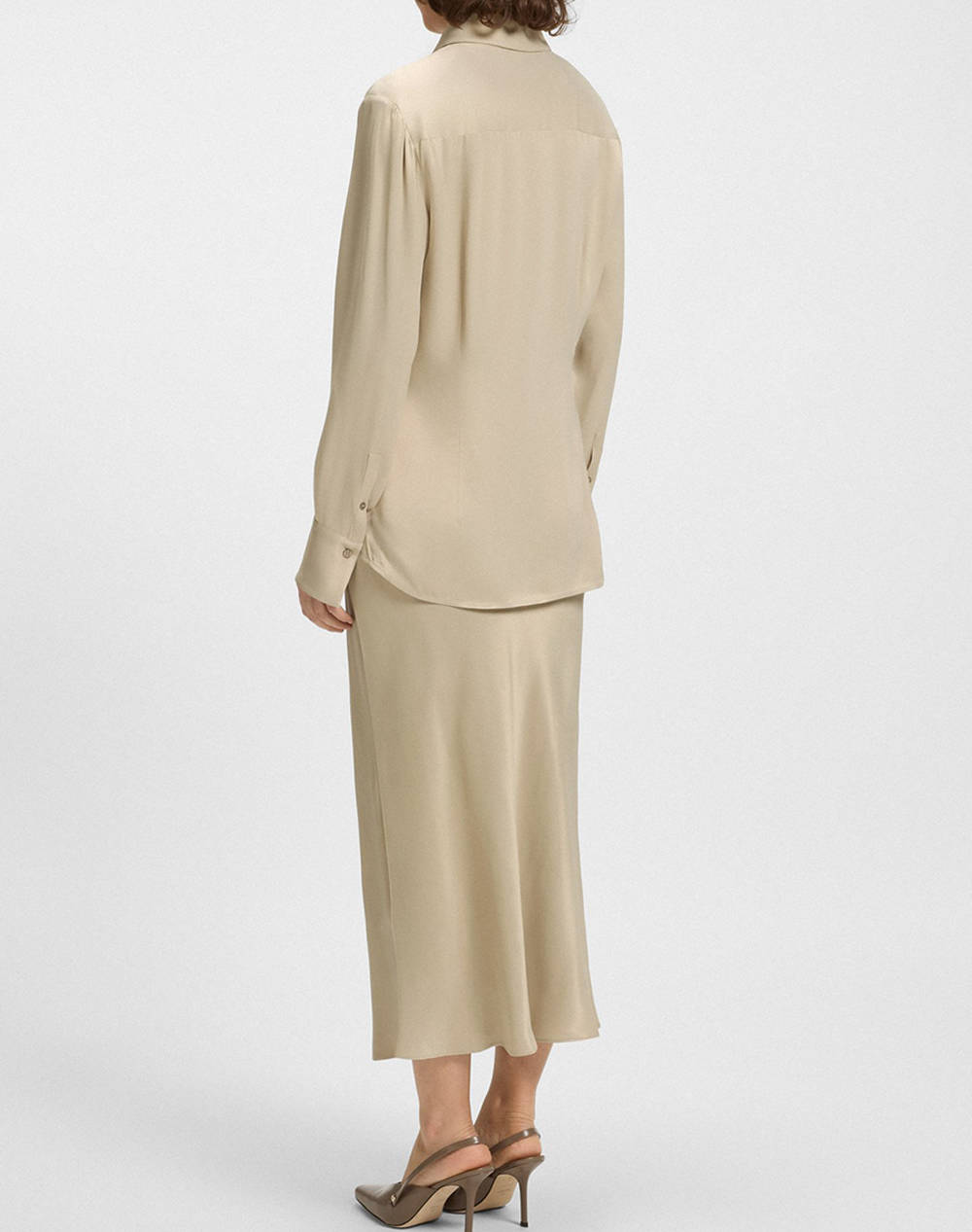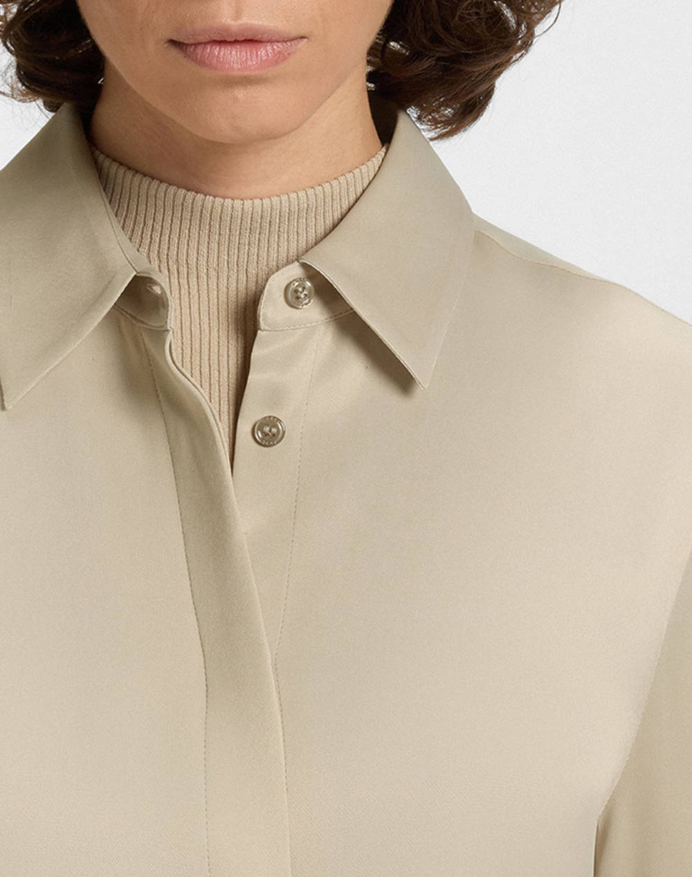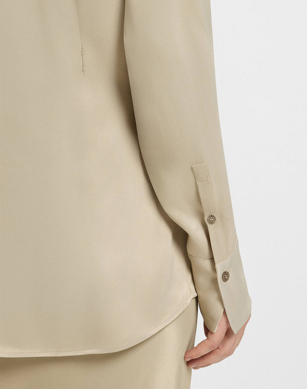 Women's satin shirt, regular fit, long sleeves, with button cuffs, classic collar and hidden button placket closure. (Composition: 100% Viscose)