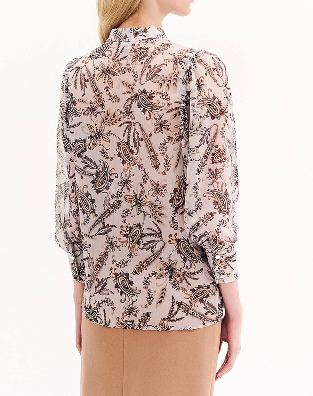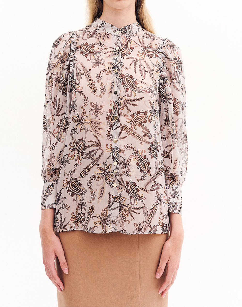 Women's long-sleeved shirt with a lahouria pattern, a Mao collar and a front button closure. (Composition: 99% Polyamide, 1% MTL Polyamide)