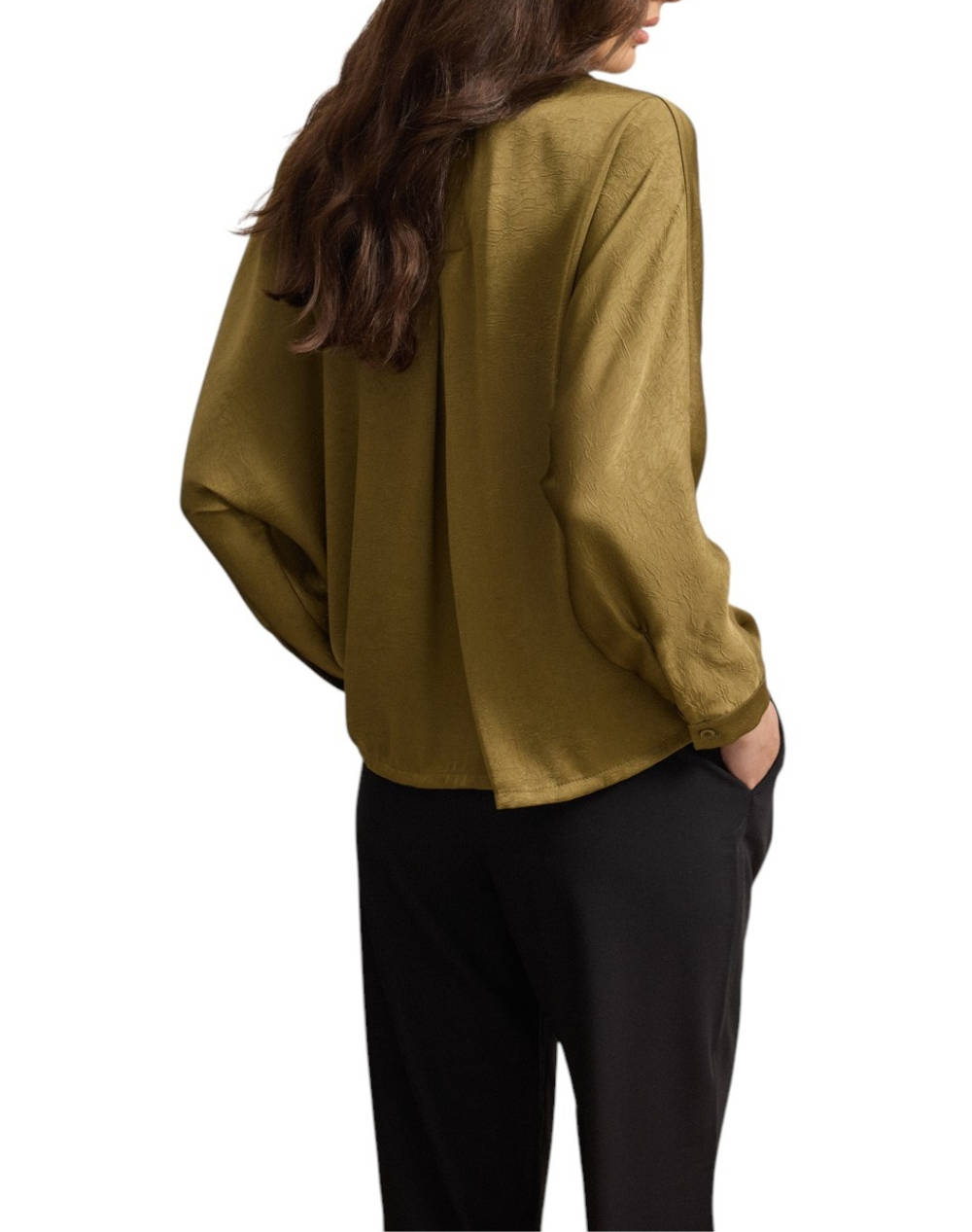 Γυναικείο πουκάμισο, σε άνετη γραμμή, μονόχρωμο, μακρυμάνικο, με σατέν όψη και κλείσιμο με κουμπιά μπροστά. (Σύνθεση:100% Πολυεστέρας)