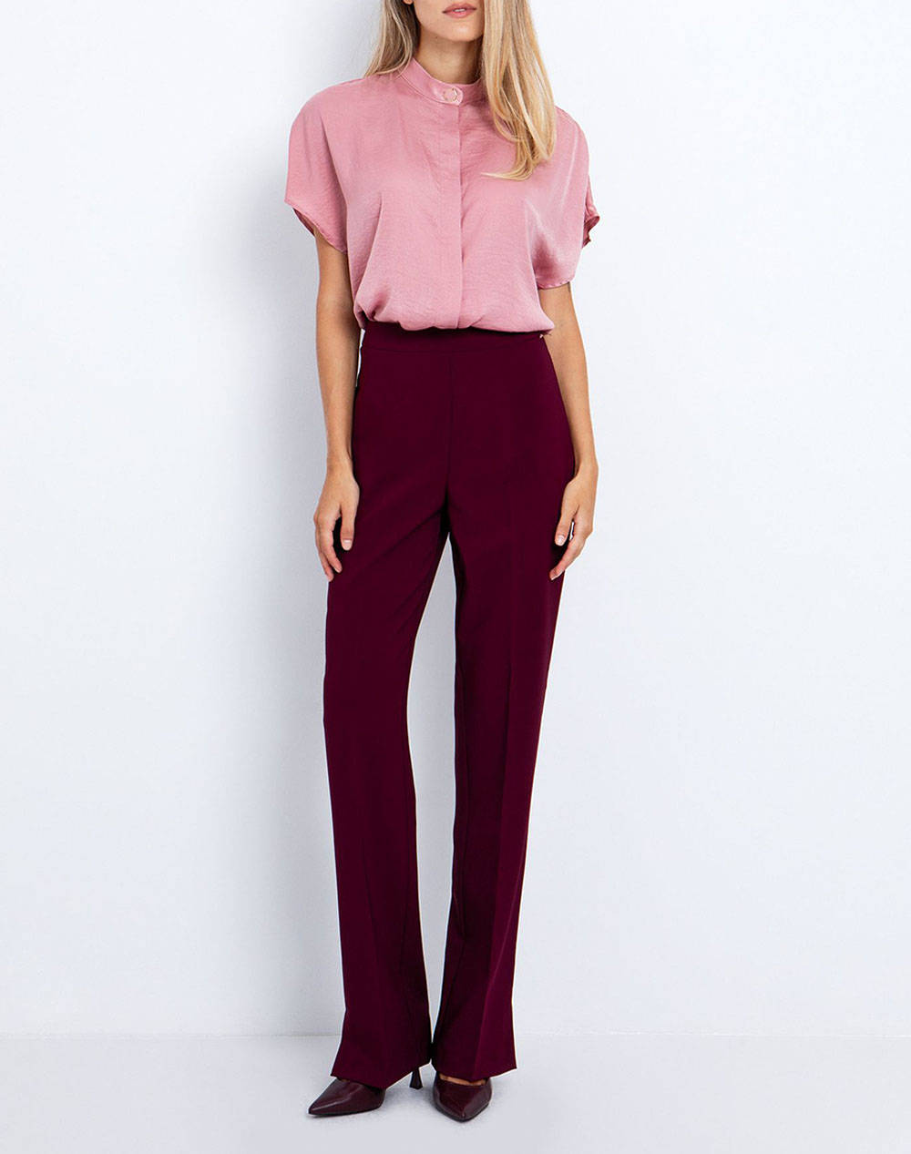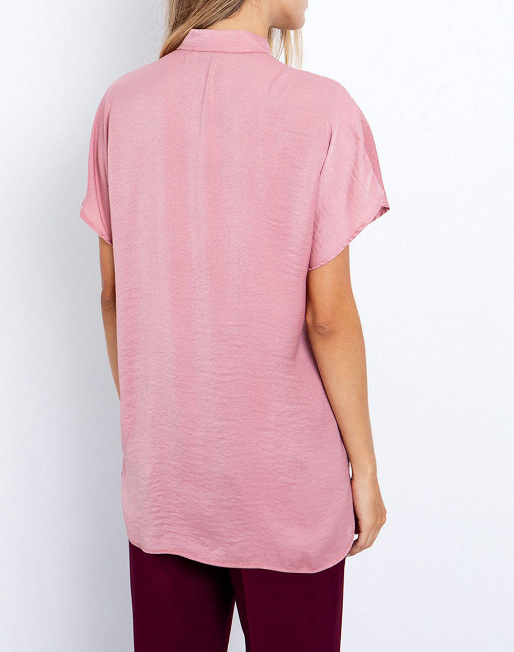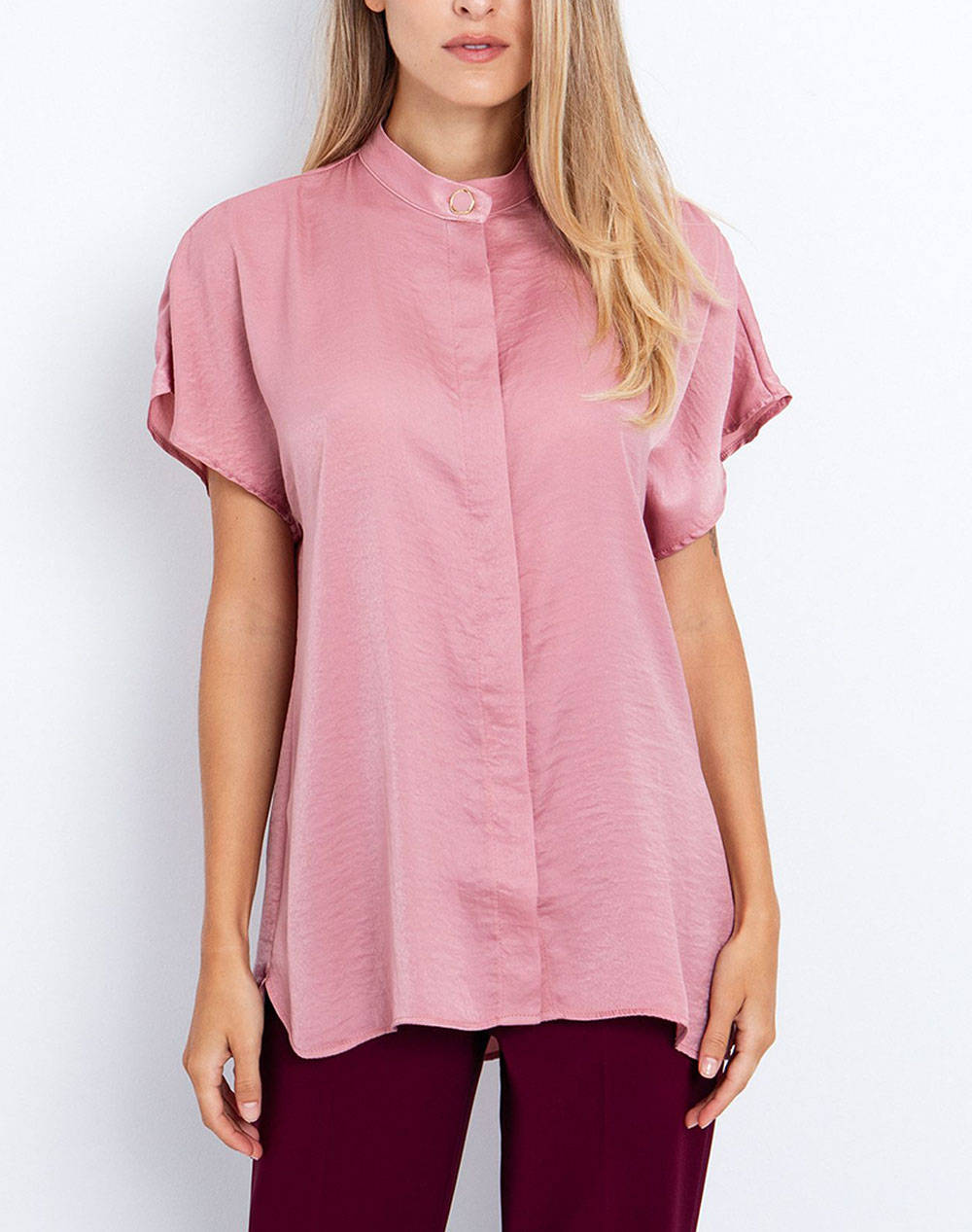 Women's shirt, solid color, short sleeves, with a mao collar with a gold button and button closure with placket. (Composition: 100% Polyester)