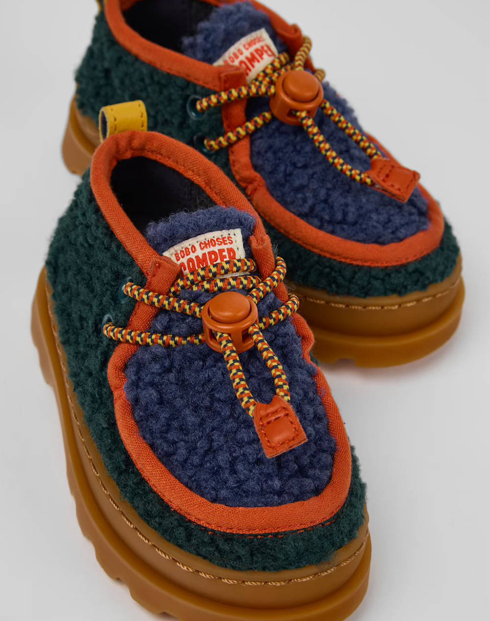 Kids' booties made from a combination of materials.