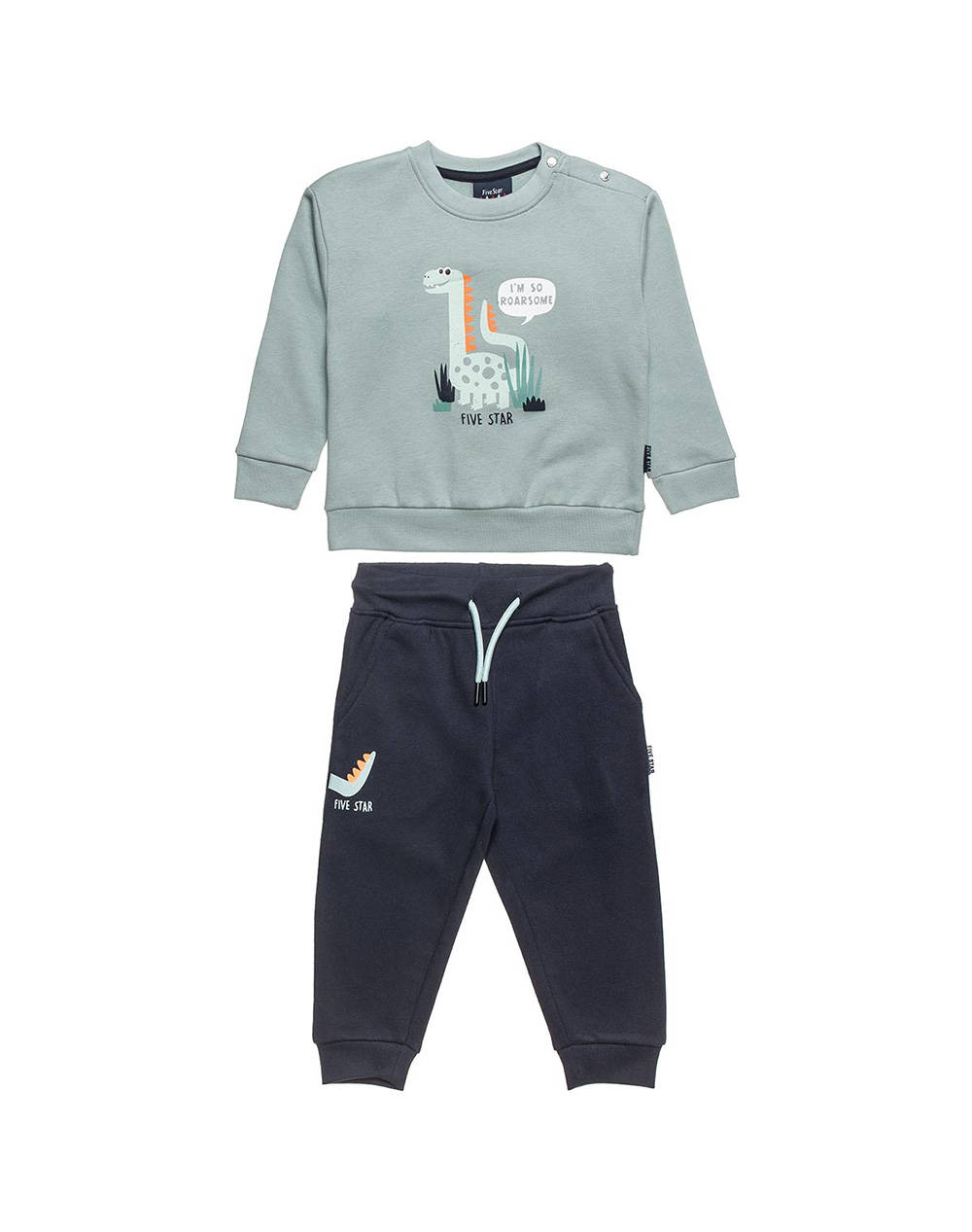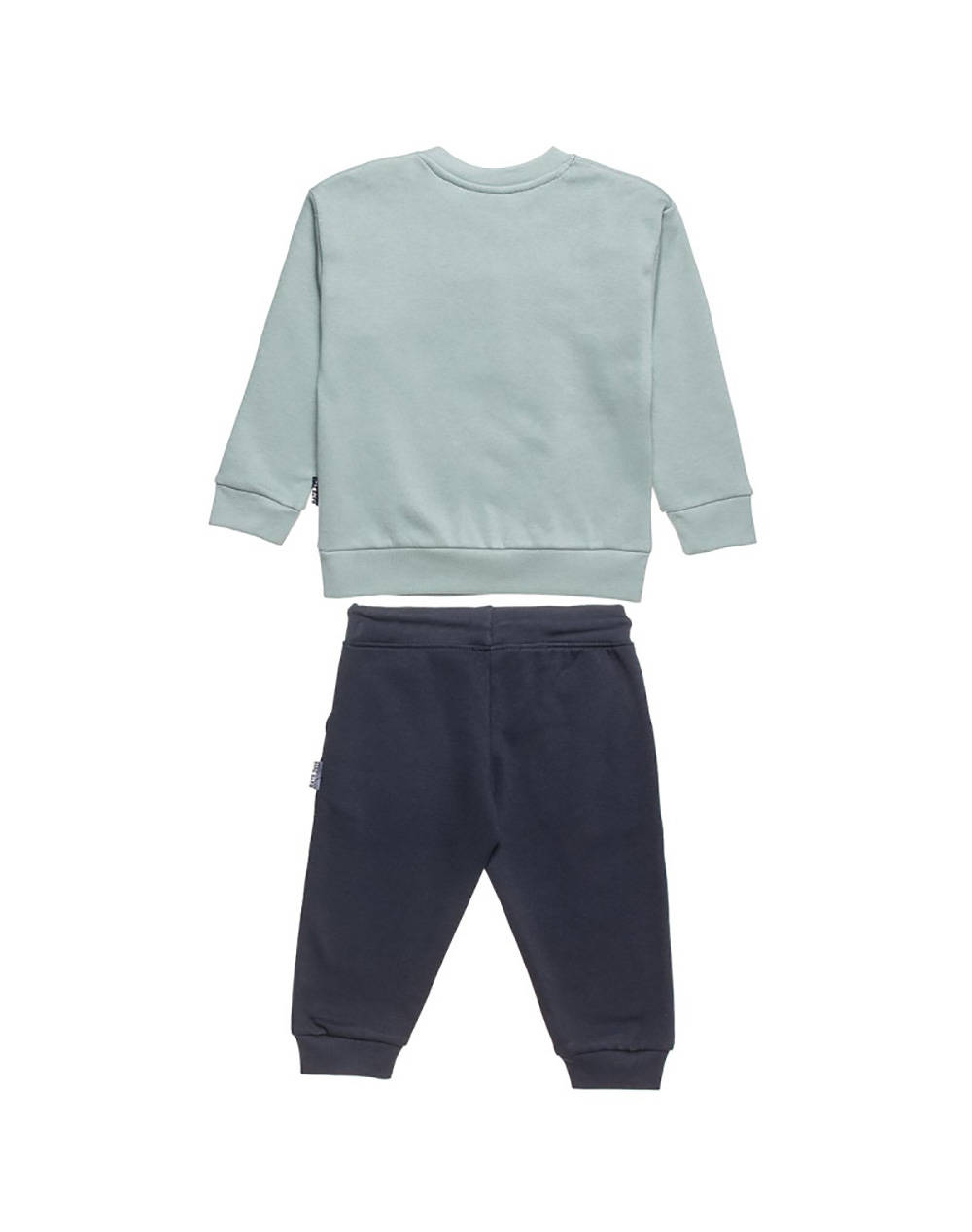 Baby tracksuit set, with a solid-colored, long-sleeved shirt, with a print on the front and buttons on the shoulder and solid-colored pants, with pockets, elastic waist and drawstring. (Composition: 80% Cotton, 20% Polyester)