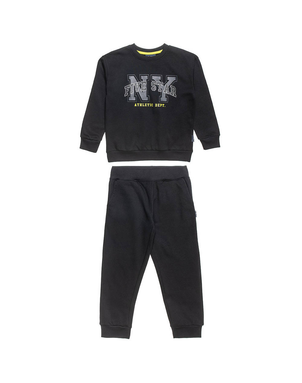 Kids' tracksuit set, with a solid-colored, long-sleeved shirt, with a print on the front and matching pants, with pockets and an elastic waist. (Composition: 80% Cotton, 20% Polyester)