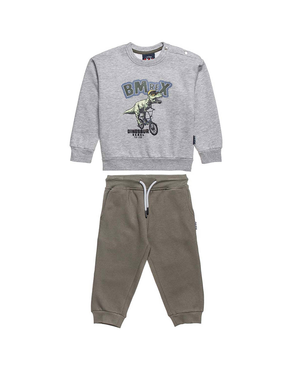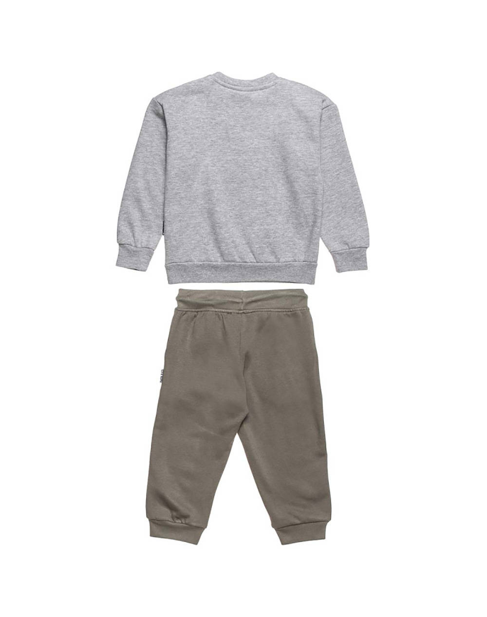 Baby tracksuit set, with a solid-colored, long-sleeved shirt, with a print on the front and buttons on the shoulder and solid-colored pants, with pockets, elastic waist and drawstring. (Composition: 80% Cotton, 20% Polyester)