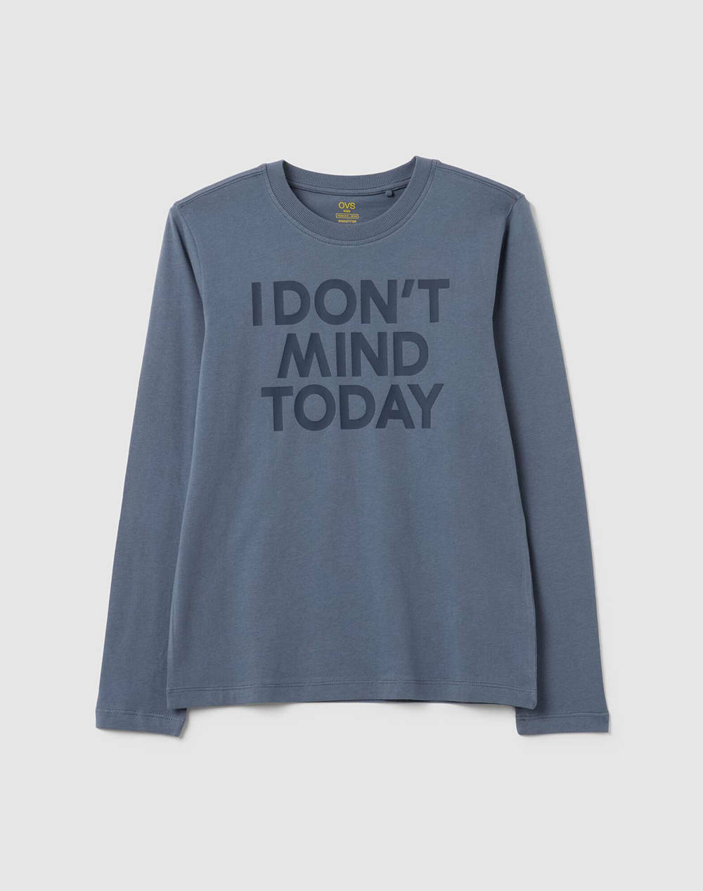 Παιδική μπλούζα, σε κανονική γραμμή, μακρυμάνικη, με στρογγυλή λαιμόκοψη και μπροστινό τύπωμα. (Σύνθεση: 100% Βαμβάκι)