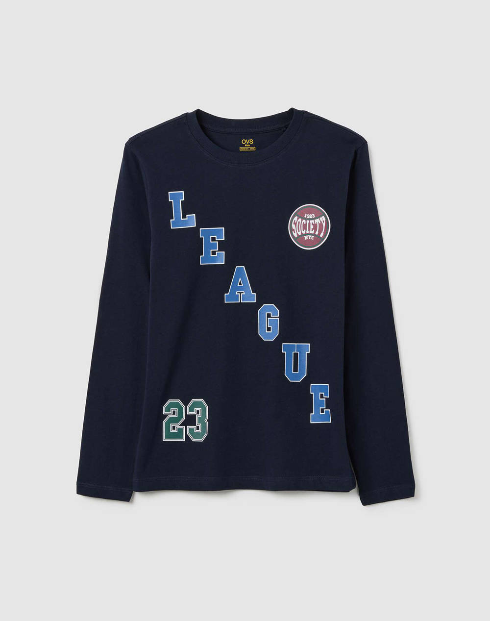 Παιδική μπλούζα, σε κανονική γραμμή, μακρυμάνικη, με στρογγυλή λαιμόκοψη και μπροστινό τύπωμα. (Σύνθεση: 100% Βαμβάκι)