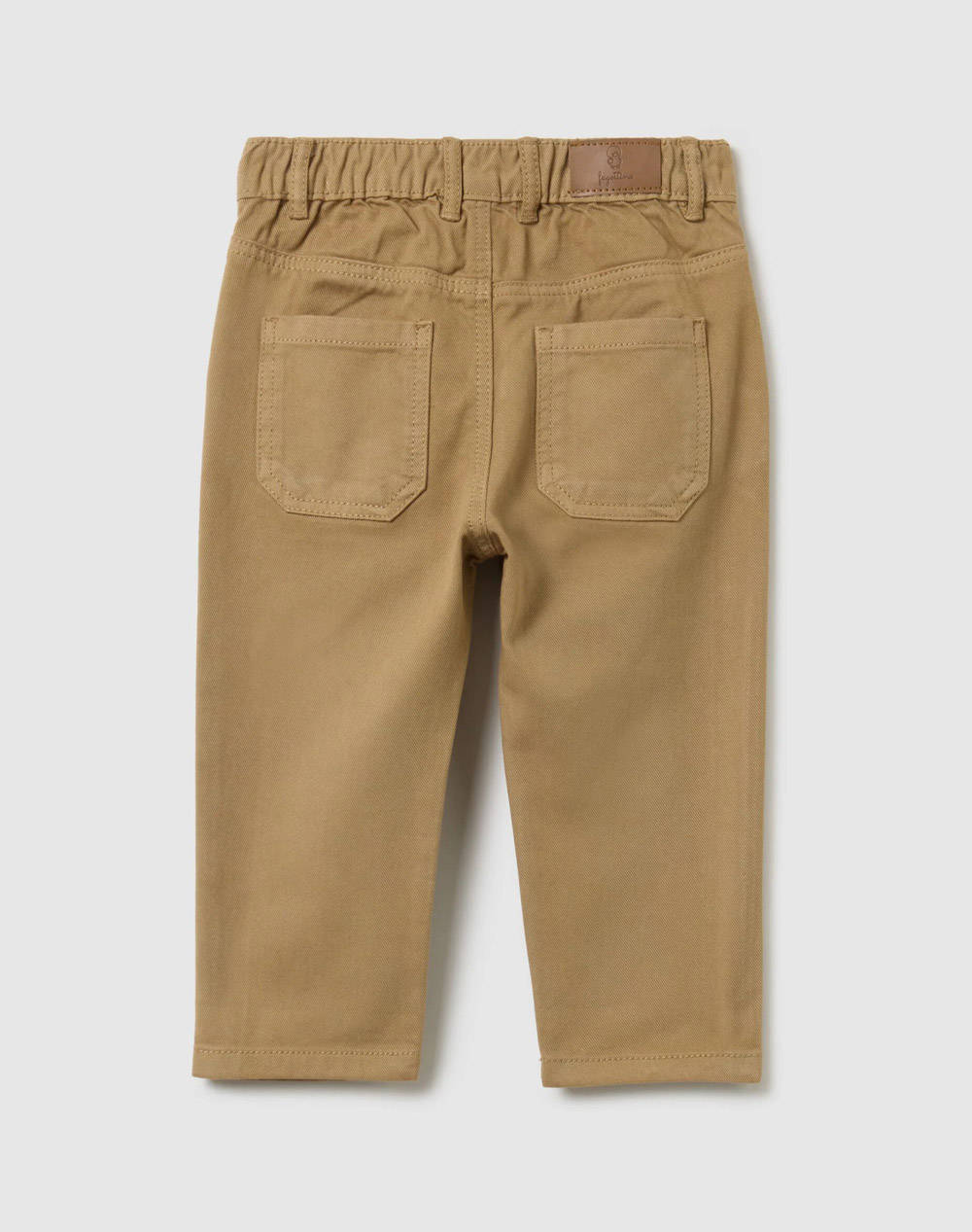 Baby pants, solid color, with pockets, elastic waist and button closure. (Composition: 81% Cotton, 16% Lyocell, 3% Viscose)