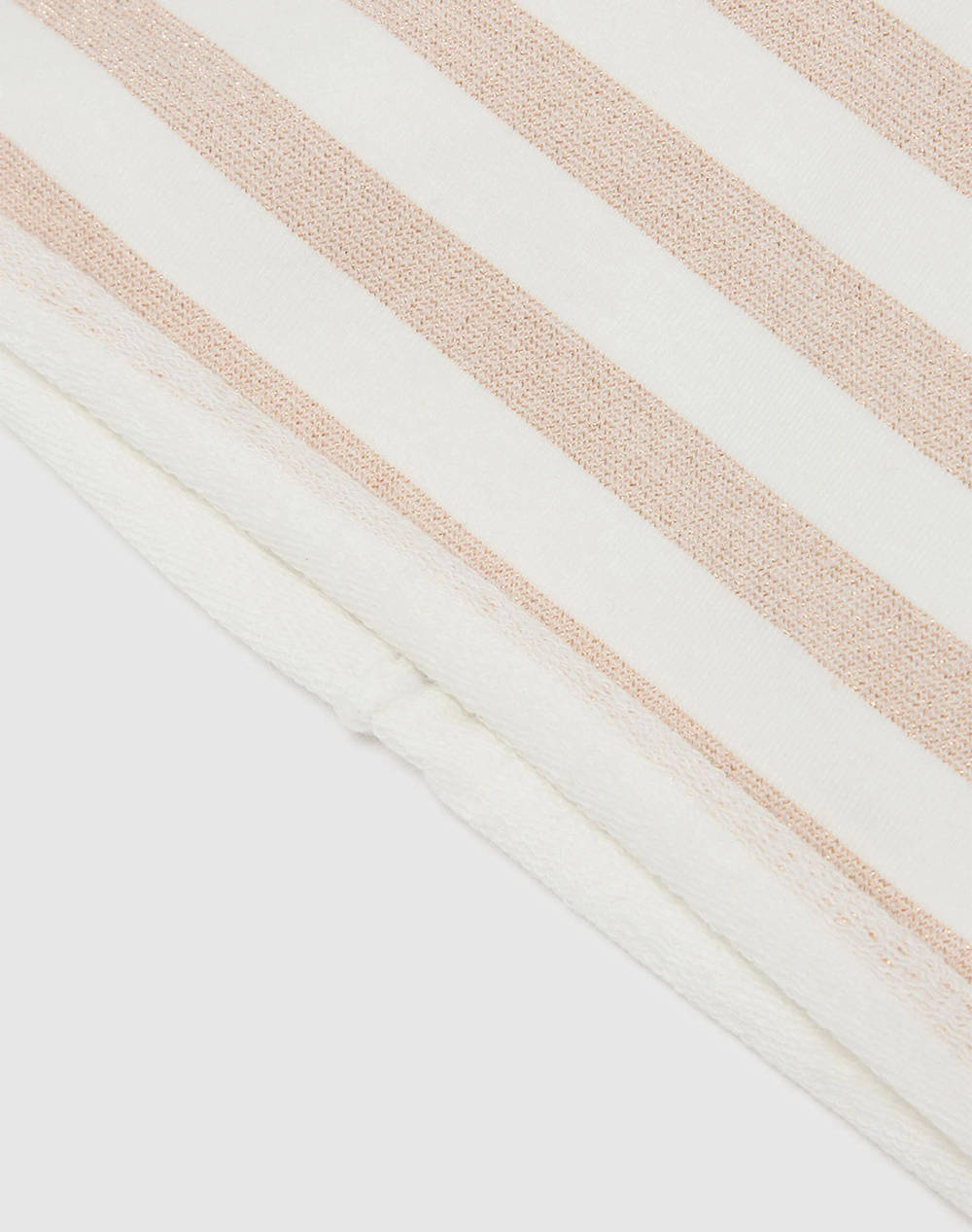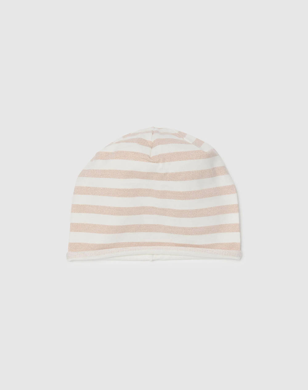 Baby hat, with elasticity and striped pattern. (Composition: 83% Cotton, 7% Elastane, 7% Polyester, 3% Metallic fibers)