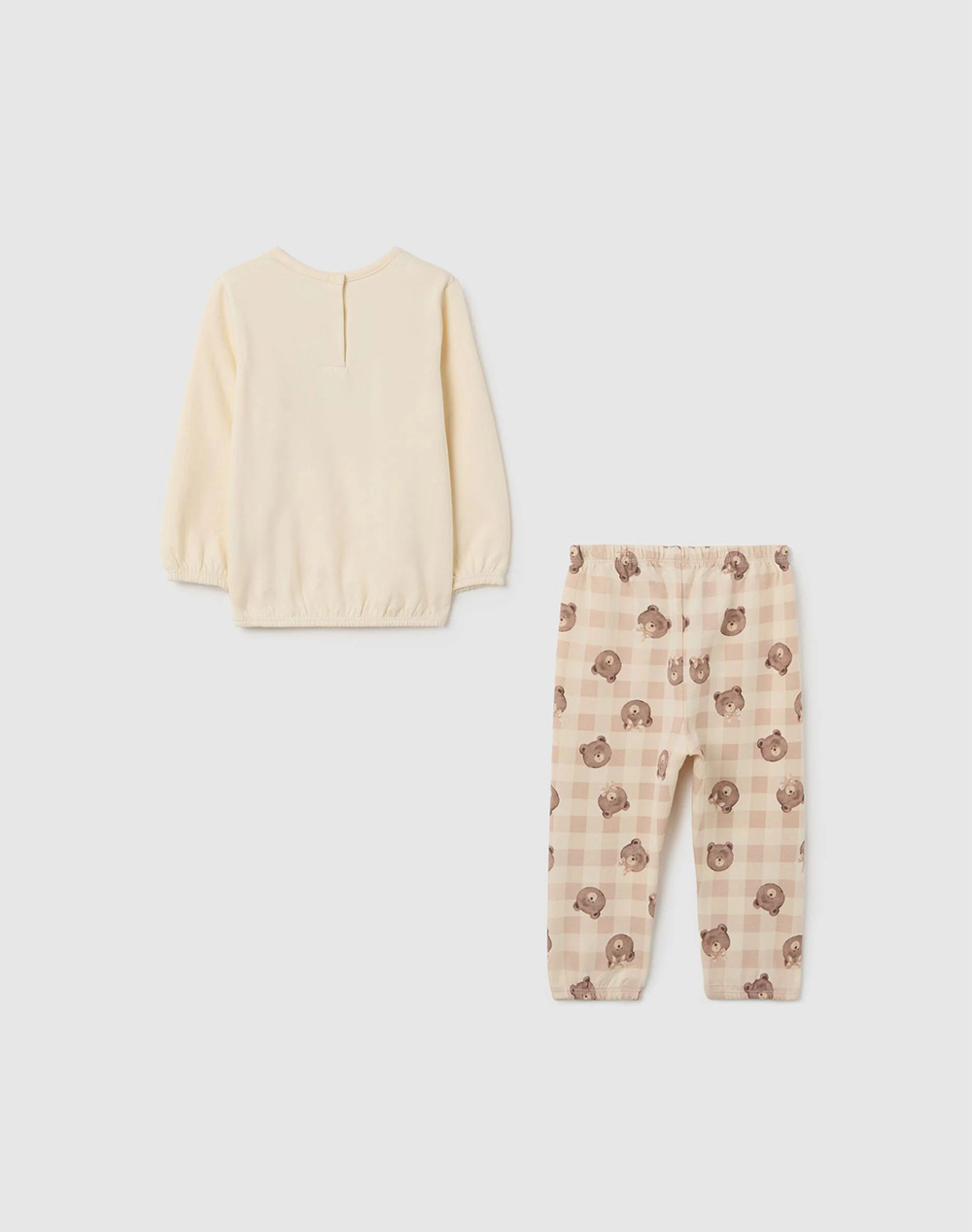 Βρεφικές πυτζάμες σετ, σε κανονική γραμμή, μακρυμάνικη μπλούζα, με στάμπα μπροστά και κουμπάκια στην πλάτη και εμπριμέ παντελόνι με ελαστική μέση. Ηλικία: 9 - 36 μηνών. (Σύνθεση: 100% Βαμβάκι)