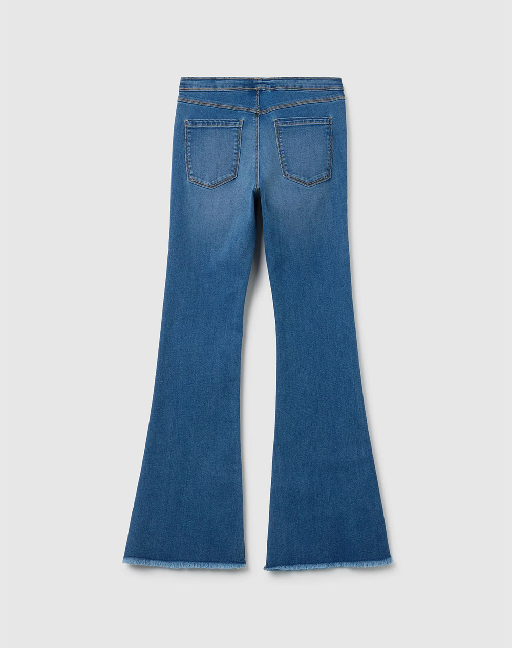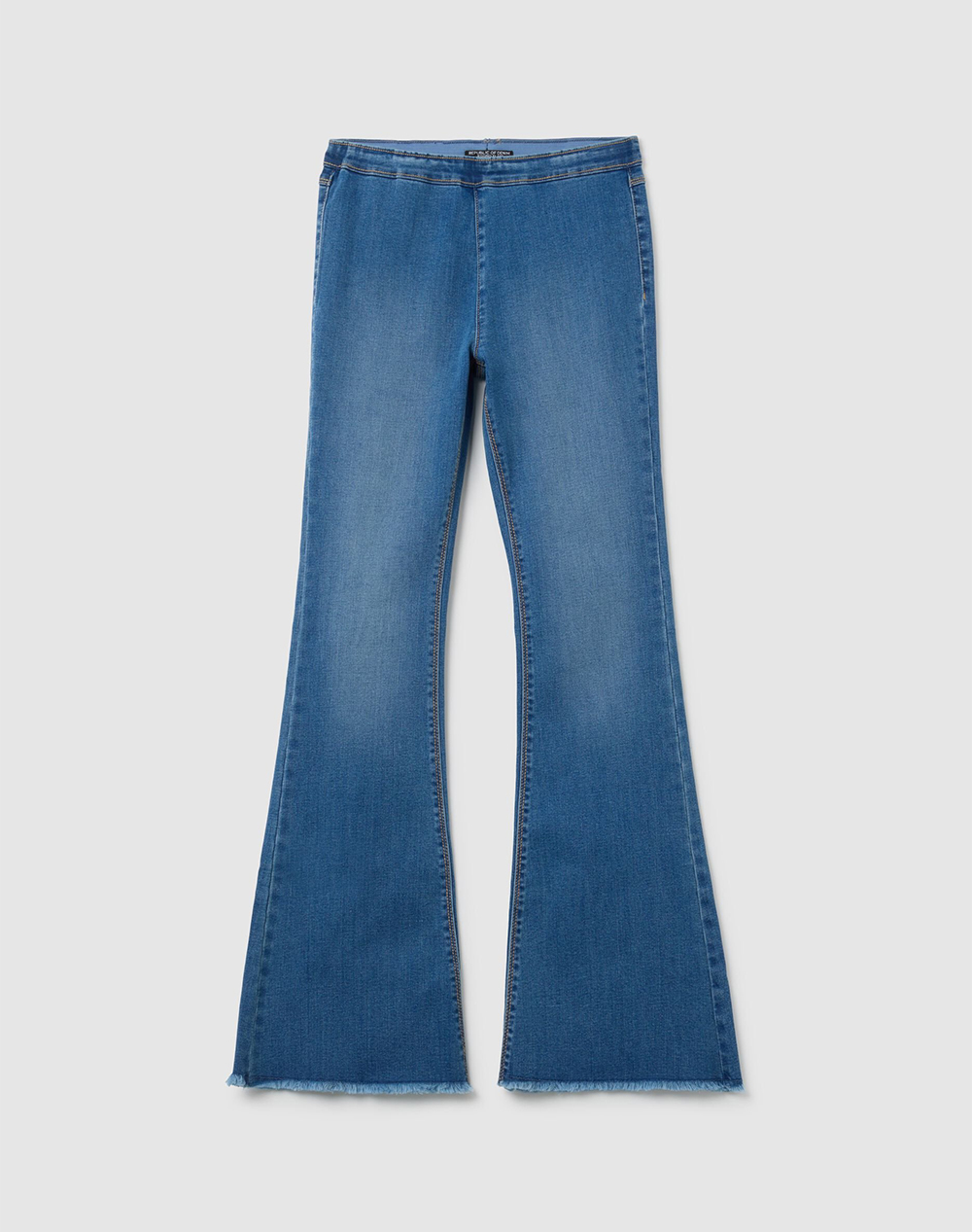 Kids' jeans, regular fit, with elastic waist and wide legs with rips at the hem. Age: 10 - 11 Years (Composition: 68% Cotton, 27% Polyester, 3% Viscose, 2% Elastane)