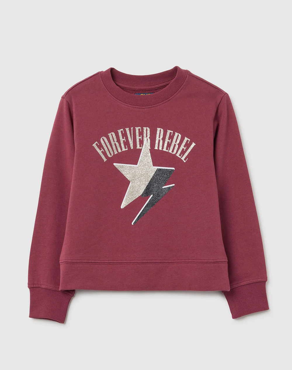 Kids' sweatshirt, regular fit, long sleeves, with glitter print on the front and round neckline. Age: 3 - 10 Years (Composition: 100% Cotton)