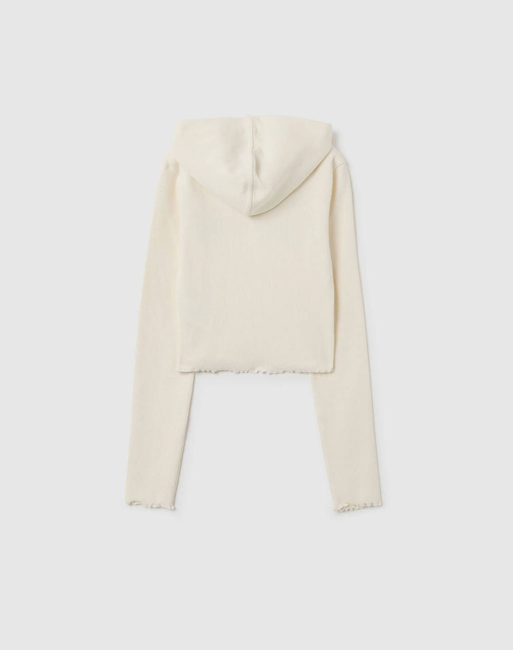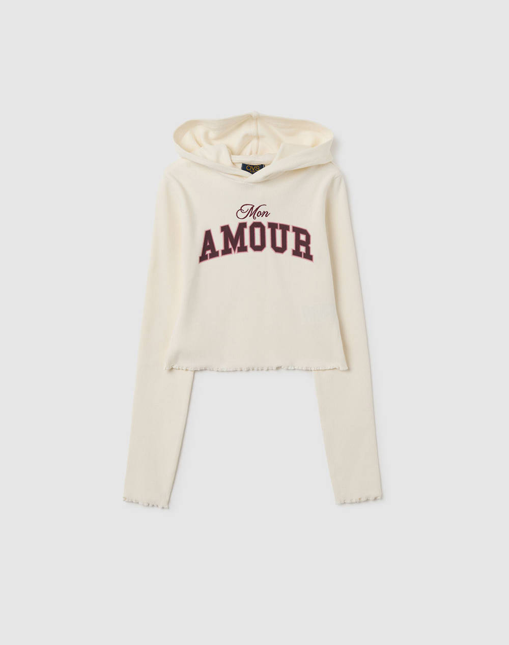 Kids' short t-shirt, regular fit, solid color, long sleeves, with print on the front and hood. (Composition: 96% Cotton, 4% Elastane)