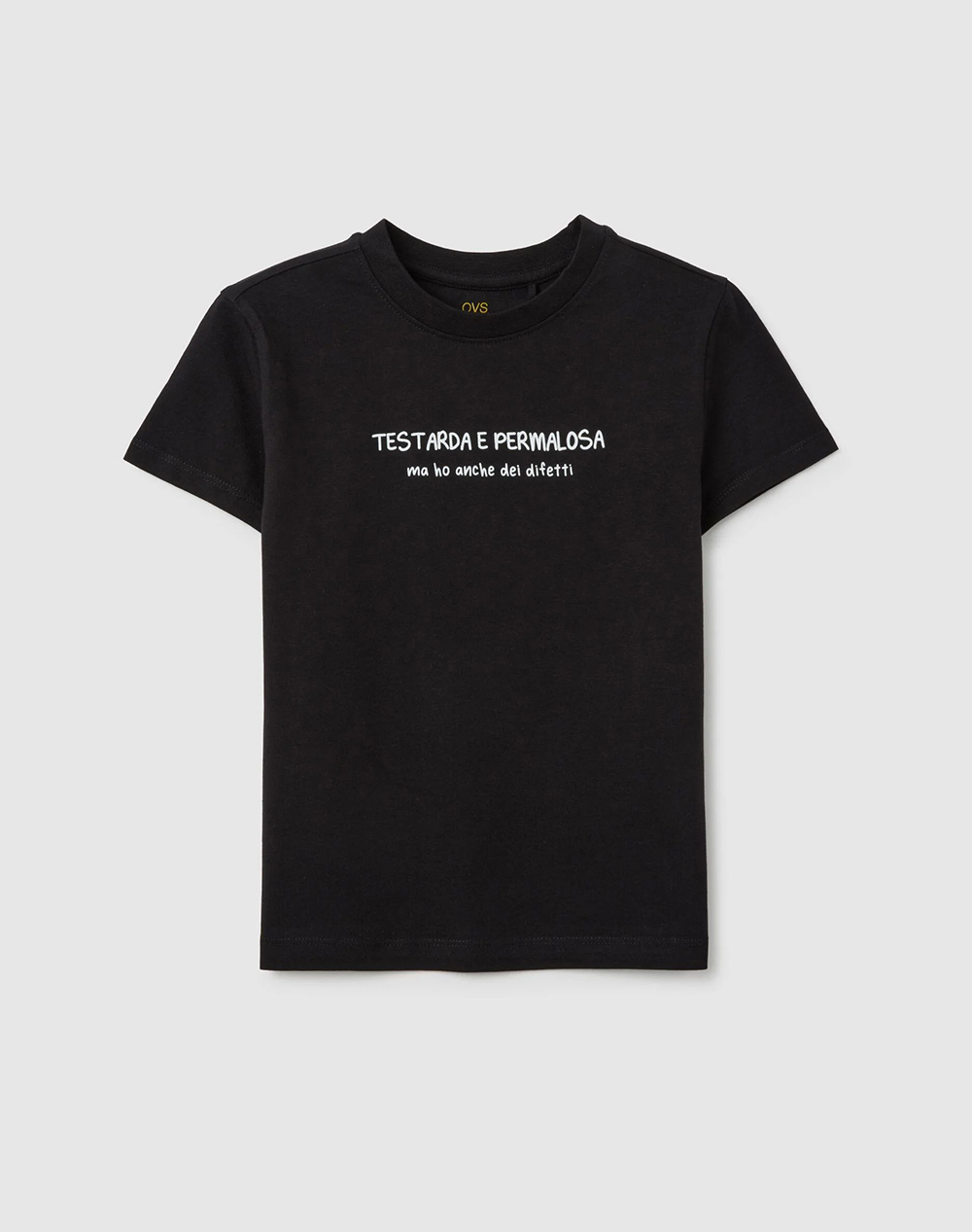 Kids' shirt, regular fit, short sleeves, with round neckline and front print. Age: 10 - 11 years. (Composition: 100% Cotton)
