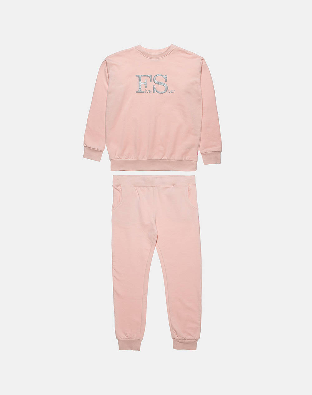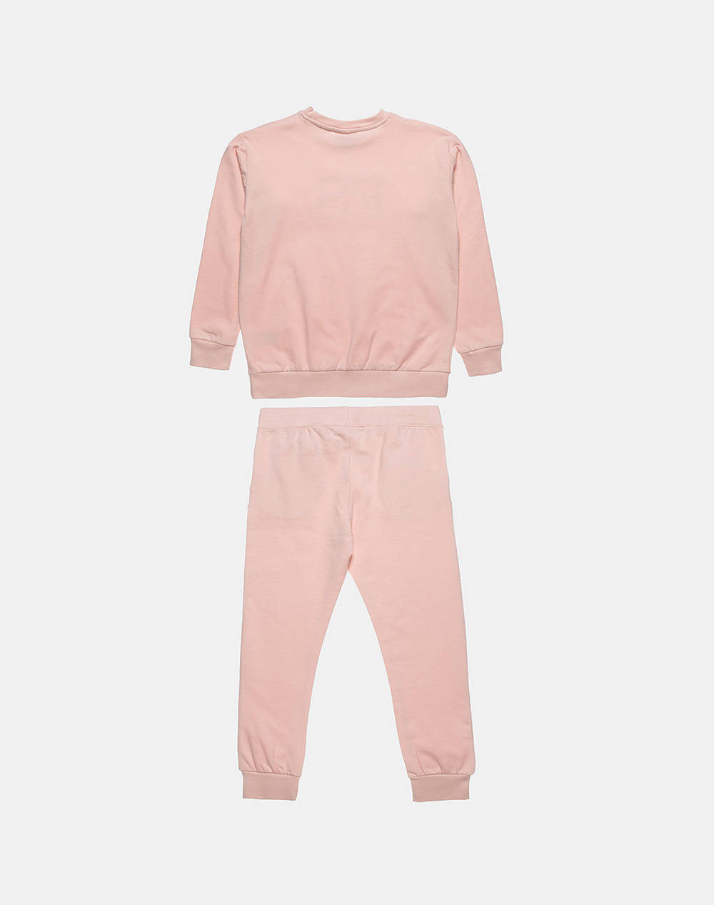 Kids' tracksuit set, with fleece lining, features a long-sleeved top with glitter design and pants with elastic waist and hem. (Composition: 95% Cotton, 5% Elastane)