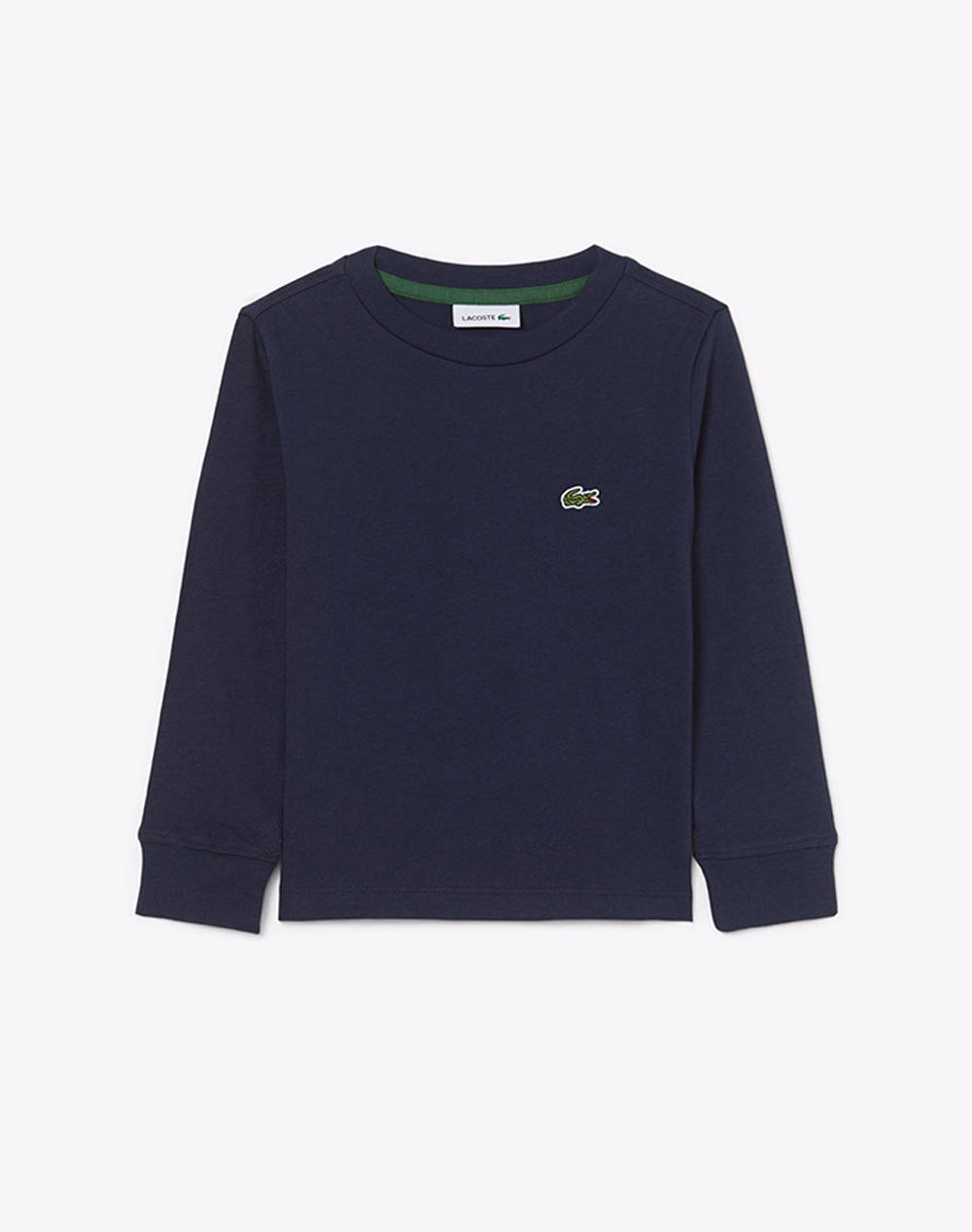 Kids' shirt, regular fit, solid color, long sleeves, with logo on the chest and round neckline. (Composition: 100% Cotton)