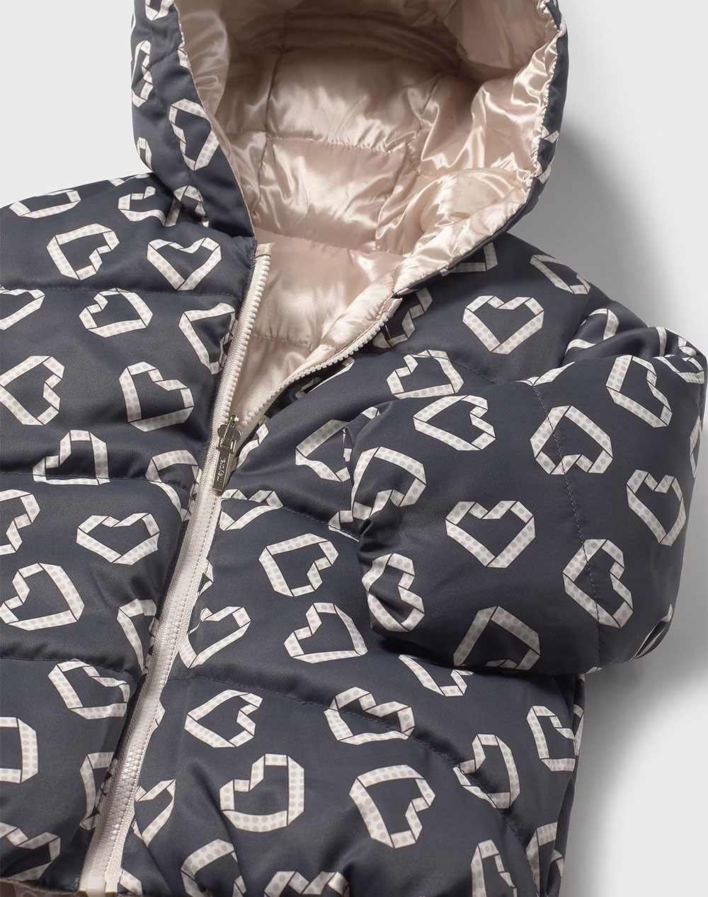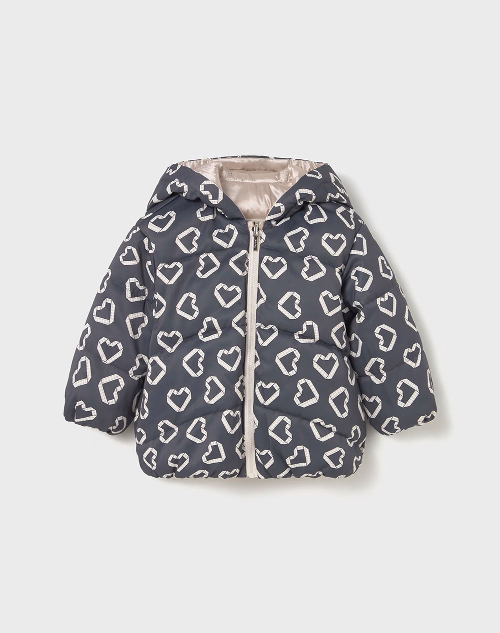 Baby jacket, double-sided, with printed pattern on the outside, hood, front pockets and zipper closure. Age: 12 Months - 3 Years (Composition: 100% Polyester)