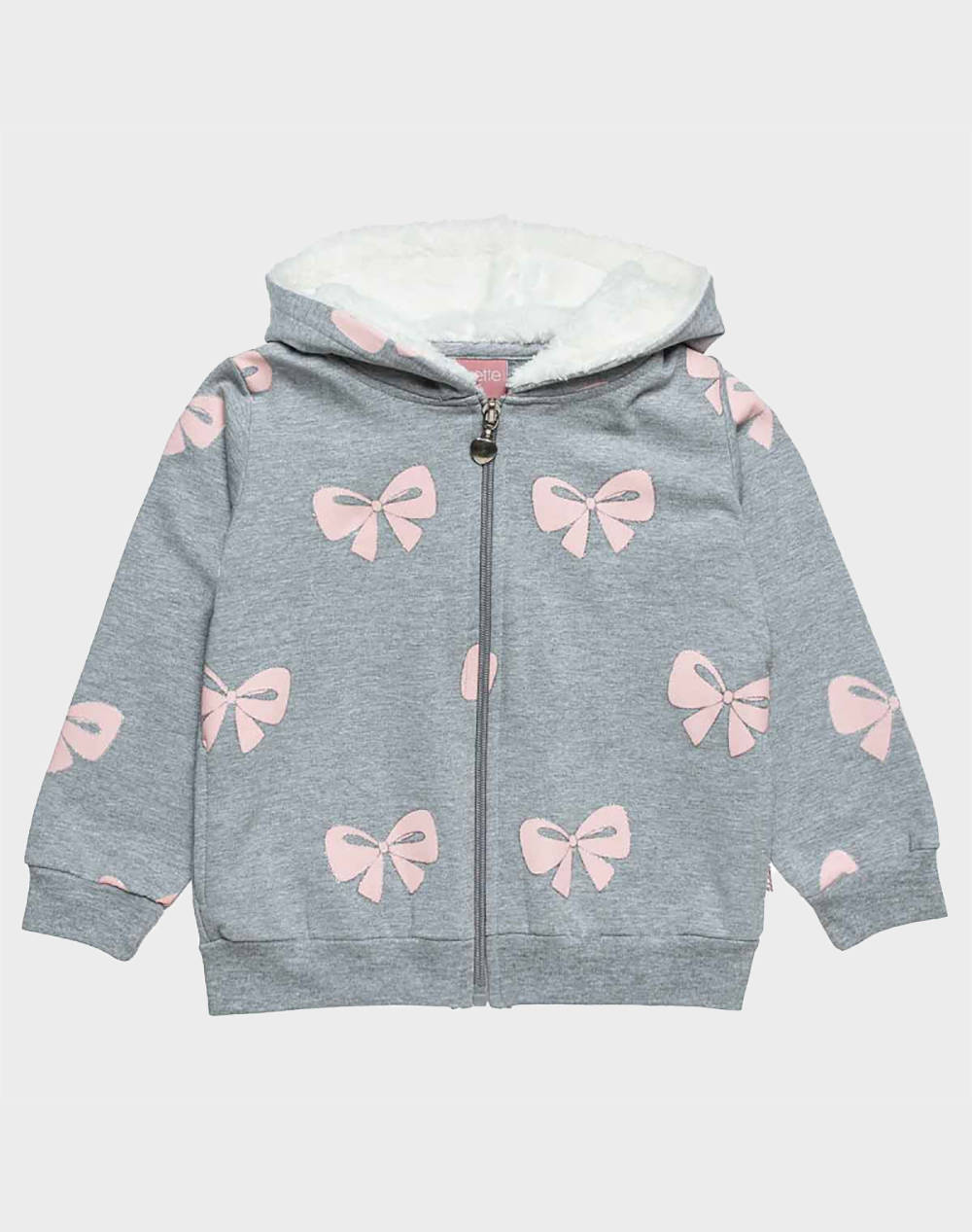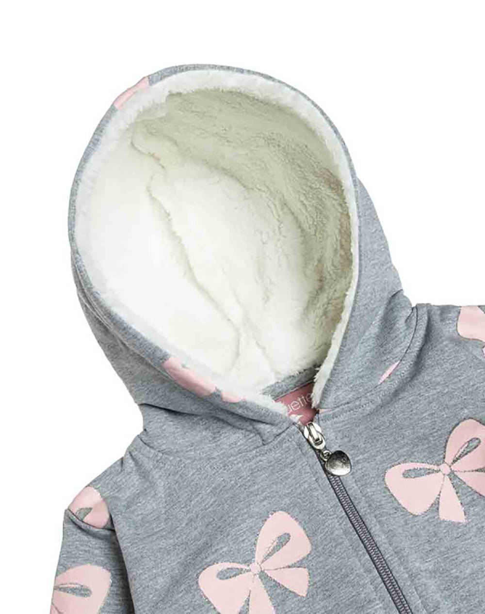 Baby cardigan, long-sleeved, with a colorful pattern, hood with eco-fur and zipper closure. Age: 12 Months - 5 Years. (Composition: 95% Cotton, 5% Elastane)