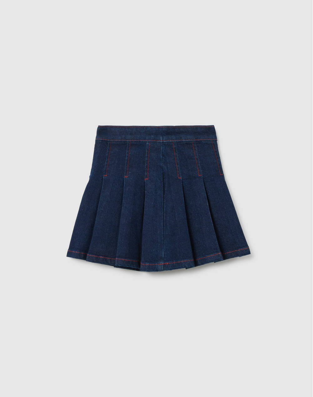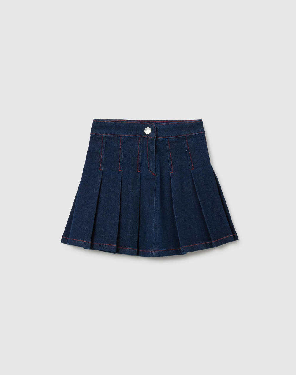Kids' denim skirt, pleated, with contrasting seams, internal waist adjustment and button closure. (Composition: 99% Cotton, 1% Elastane)